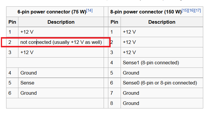 Kann das mal jemand durchmessen? Dann sind Pin 2 am 6Pol und (einer) der PCI-E 12V nämlich verbunden.