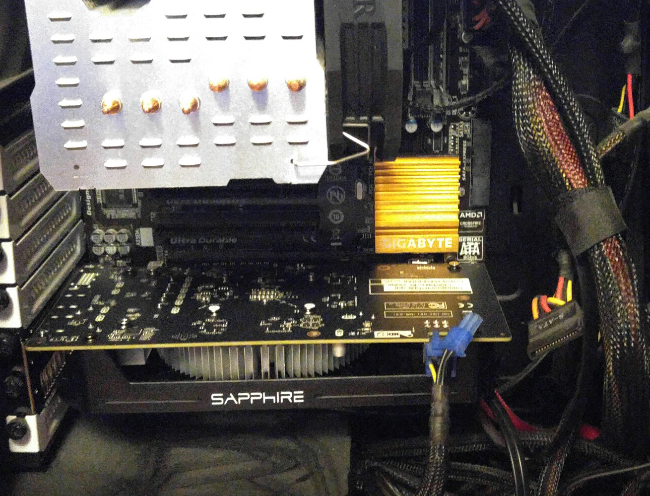 Ich bin alles andere als ein Hardware-Experte, aber auf dem Mainboard gab es zwei Slots, in dem die Karte gepaßt hätte. Der erste kam nicht in Frage, da der CPU-Kühler so groß ist, dass die Karte dort nicht einsteckbar ist.
