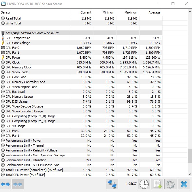 Ganz schön heftig die Temperaturen und Lautstärke. Verglichen mit meiner Asus RTX 2070 ROG Strix, die minimum 28 Grad, im Desktop Betrieb 33 Grad und beim intensiven Zocken gerade mal 60 Grad erreicht.