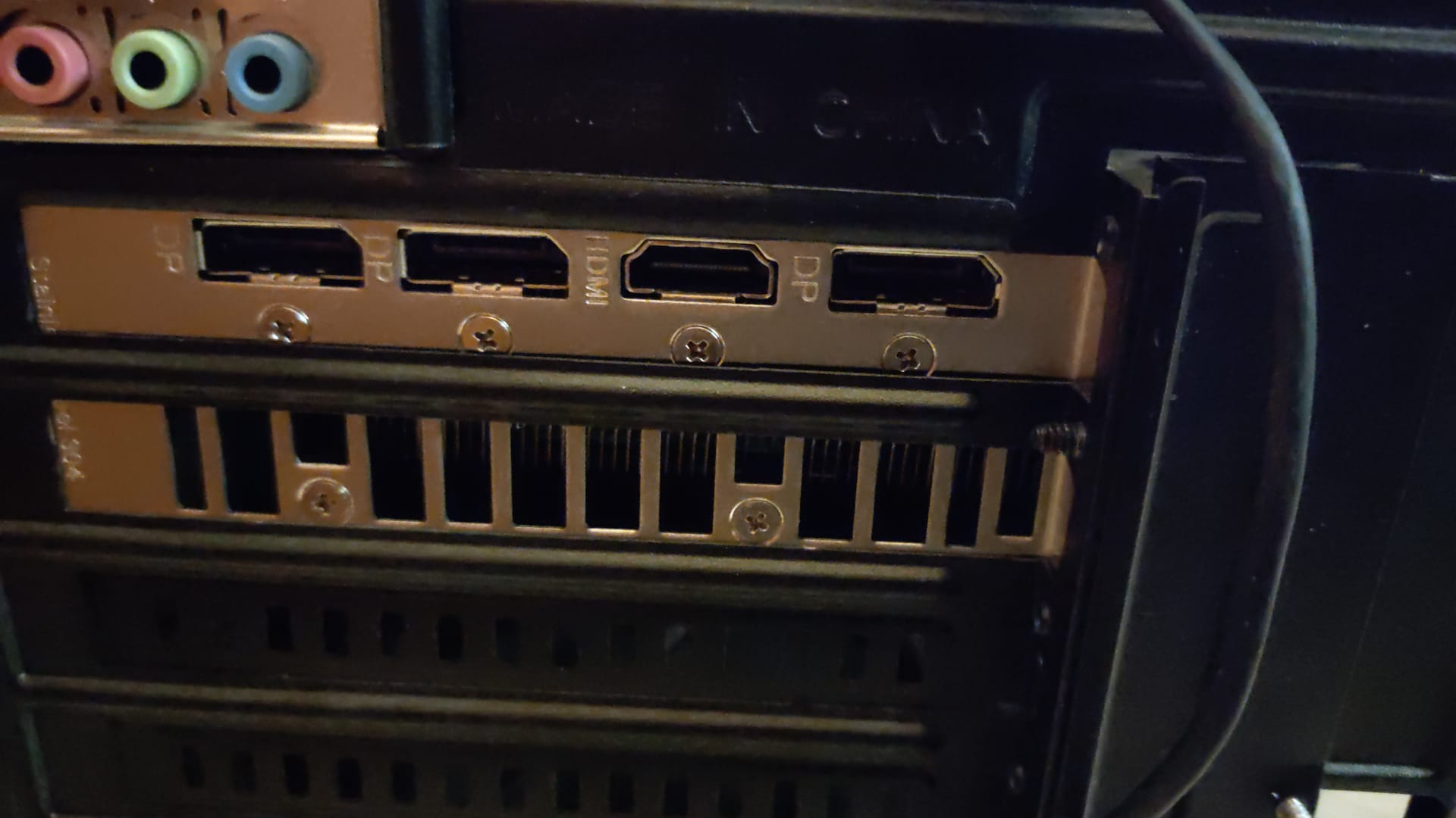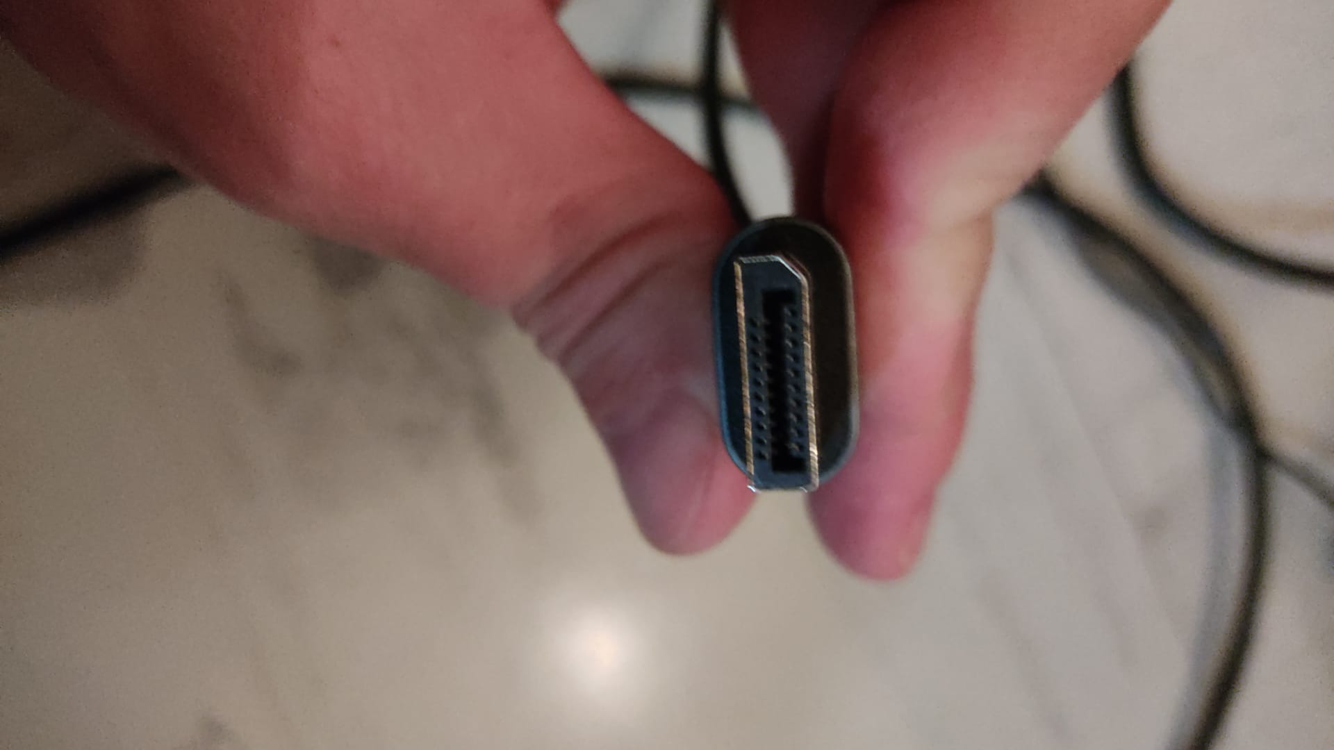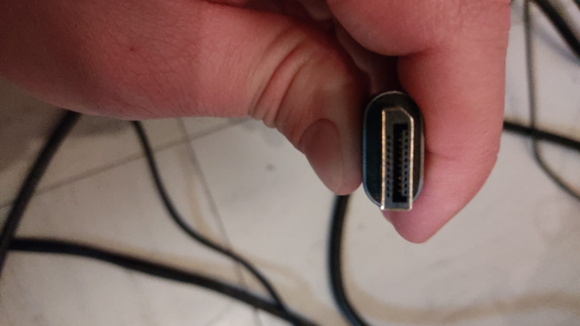 Des Weiteren ist es so, dass das Dual-Monitor-Setup leicht ausfällt, sobald ich etwas an ein Kabel dran komme. Dann muss ich in mehreren Versuchen die Kabel aus- und wieder einstecken, bis ich wieder gleichzeitig das Bild habe auf beiden Monitoren. Einzeln kommt das Bild auf den 2 von 3 DisplayPort-Anschlüssen sofort. Ist vielleicht ein Kabel defekt? Aber dann dürfte ich doch gar kein Bild erst bekommen. Ich habe mal Bilder der zwei identischen DisplayPort-Kabel angehangen, sowie von der Grafikkarte.
