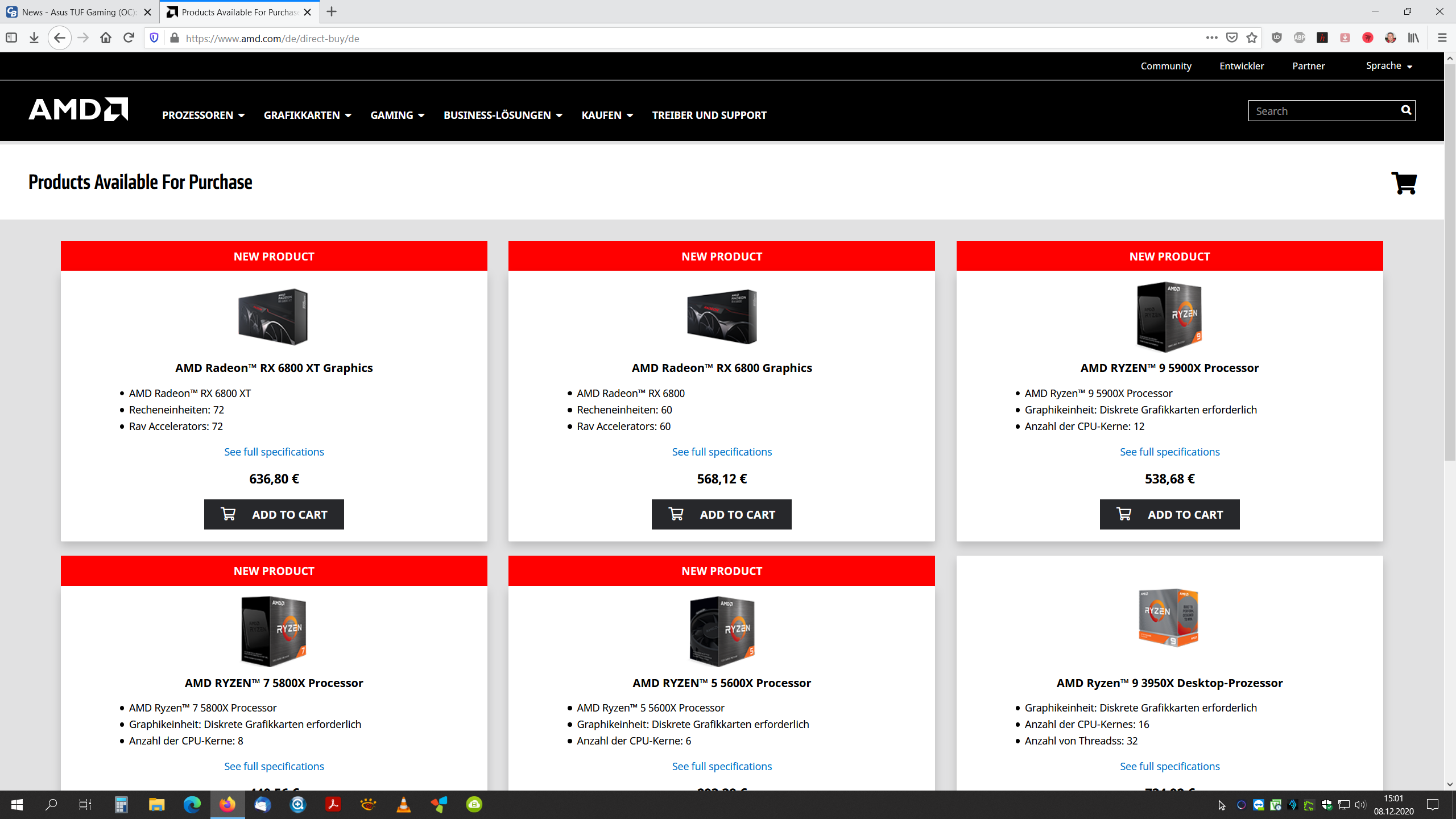 Die Seite scheint überlastet zu sein, ich kann da nichts kaufen.guru_meditation schrieb:AMD Shop sind dafür aktuell die 6800 und die 6800XT