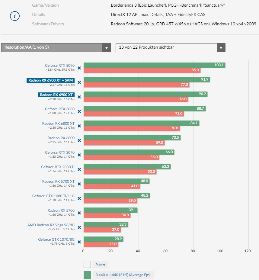 Einzig beim VRAM kann die 6900 Punkten, aber den bietet auch die 6800 XT.