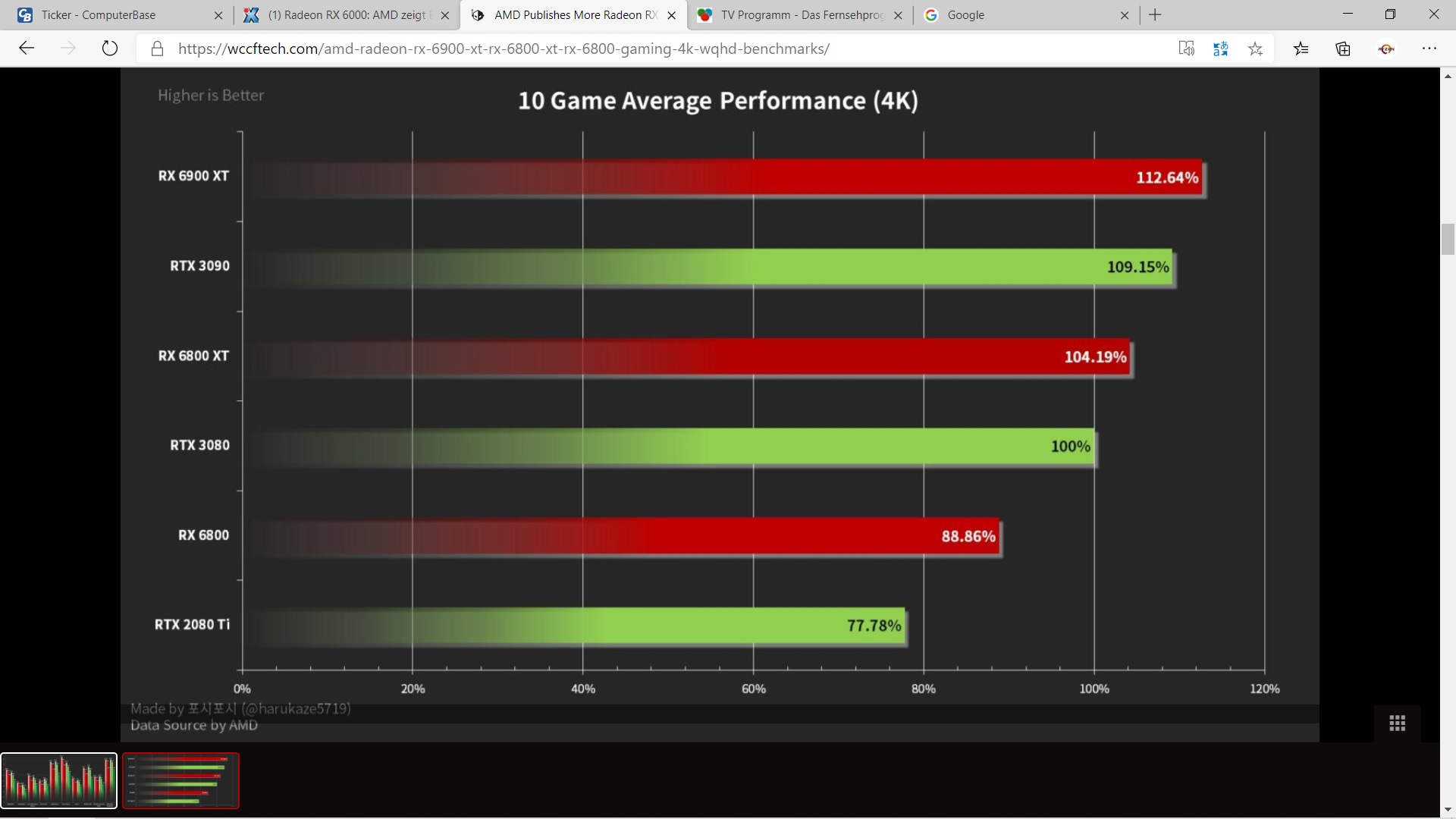 Wenn man bedenkt das die 6800XT 6% hinter der 3080 liegt und die 6900XT auch nicht an die 3080 rankommt und das bei dem UVP von 999,- gegenüber dem UVP der 3080 von 699,-.
