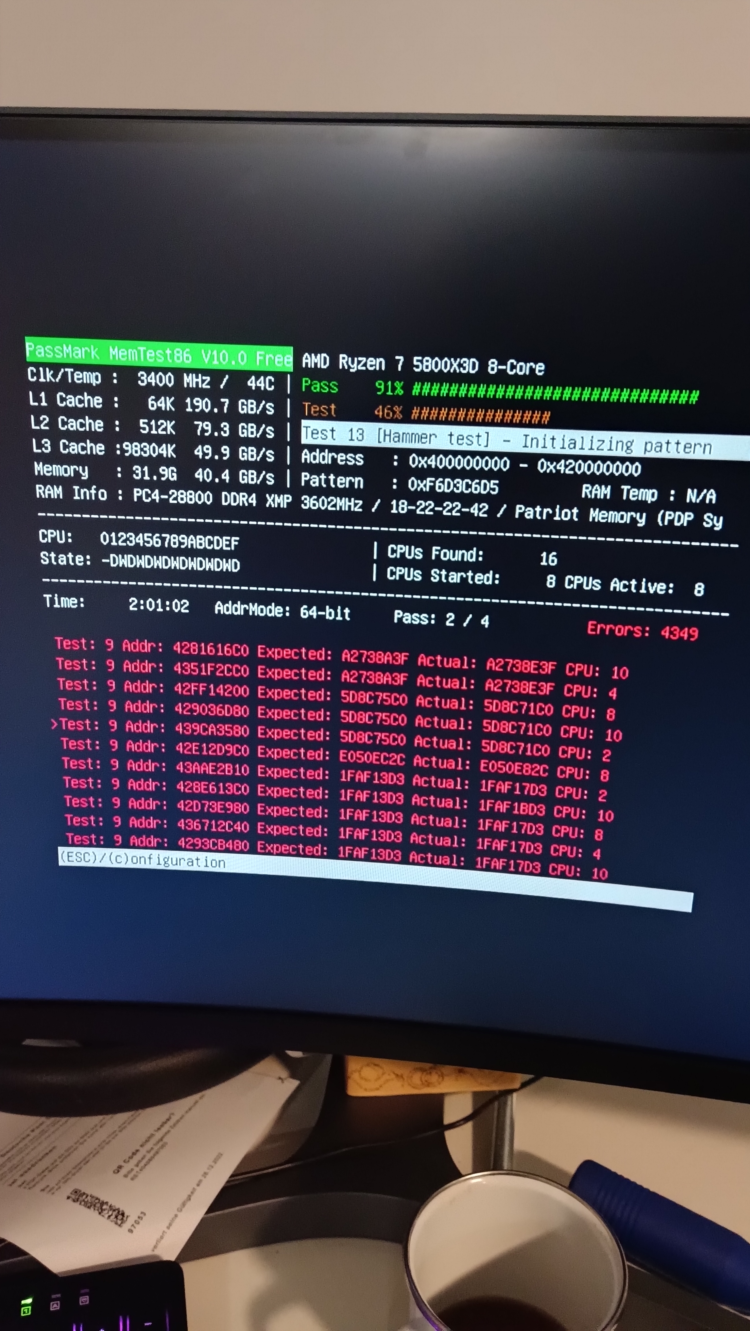 habe viele Tipps die ich im Internet gefunden habe ausprobiert(Treiber Update, mit und ohne Adrenalin installiert ect.) hat aber nichts gebrach, ich habe mich entschieden die Arbeitsspeicher zu testen mit MemTest86. beim ersten Testlauf hat über 1000 Fehler gefunden.