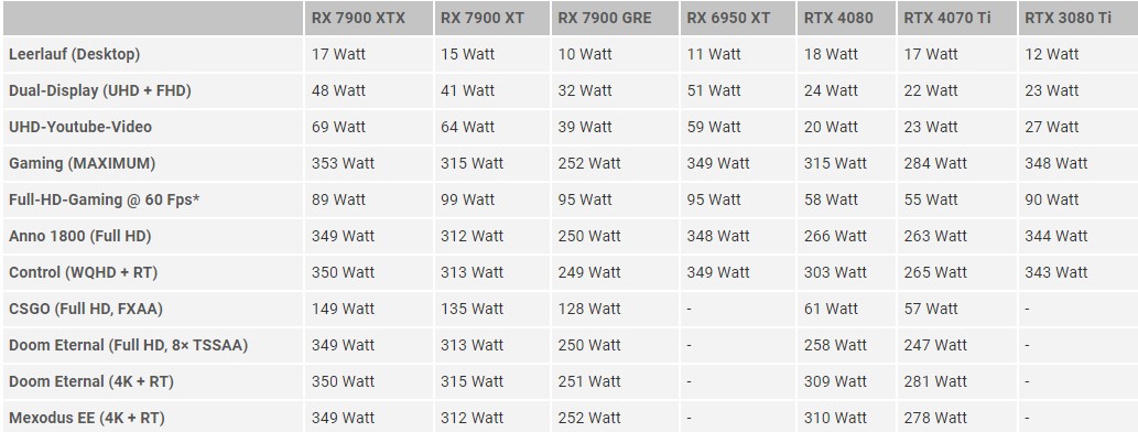 Weiterhin beinhaltete der Test der 7900 GRE im August 23 nicht die Idle Powerdraw Verbesserungen des 23.12.1 Treibers.