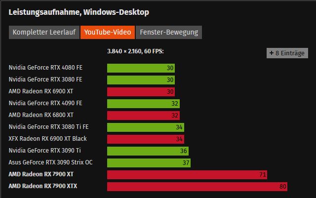 Aber dem gegenüber steht bspw. eine Effizienz, die zu Wünschen übrig lässt. Insbesondere im Idle oder bei simplen Anwendungen wird hier viel zu viel Strom verbraucht. Es ist schön wenn man sich nVidia angleichen will - aber doch nicht hier!?