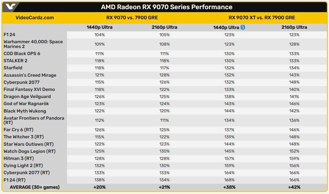 Kommt wohl am ende so bei 7900 xtx Niveau raus und bischen besser in rt. Alles wie bisher vermutet. Bischen günstiger als die xtx, weniger Verbrauch und fsr4. Mal schauen was der 'Markt' aus den Preisen macht. Für 600-700 Euro wäre die 9070xt eine tolle Karte.