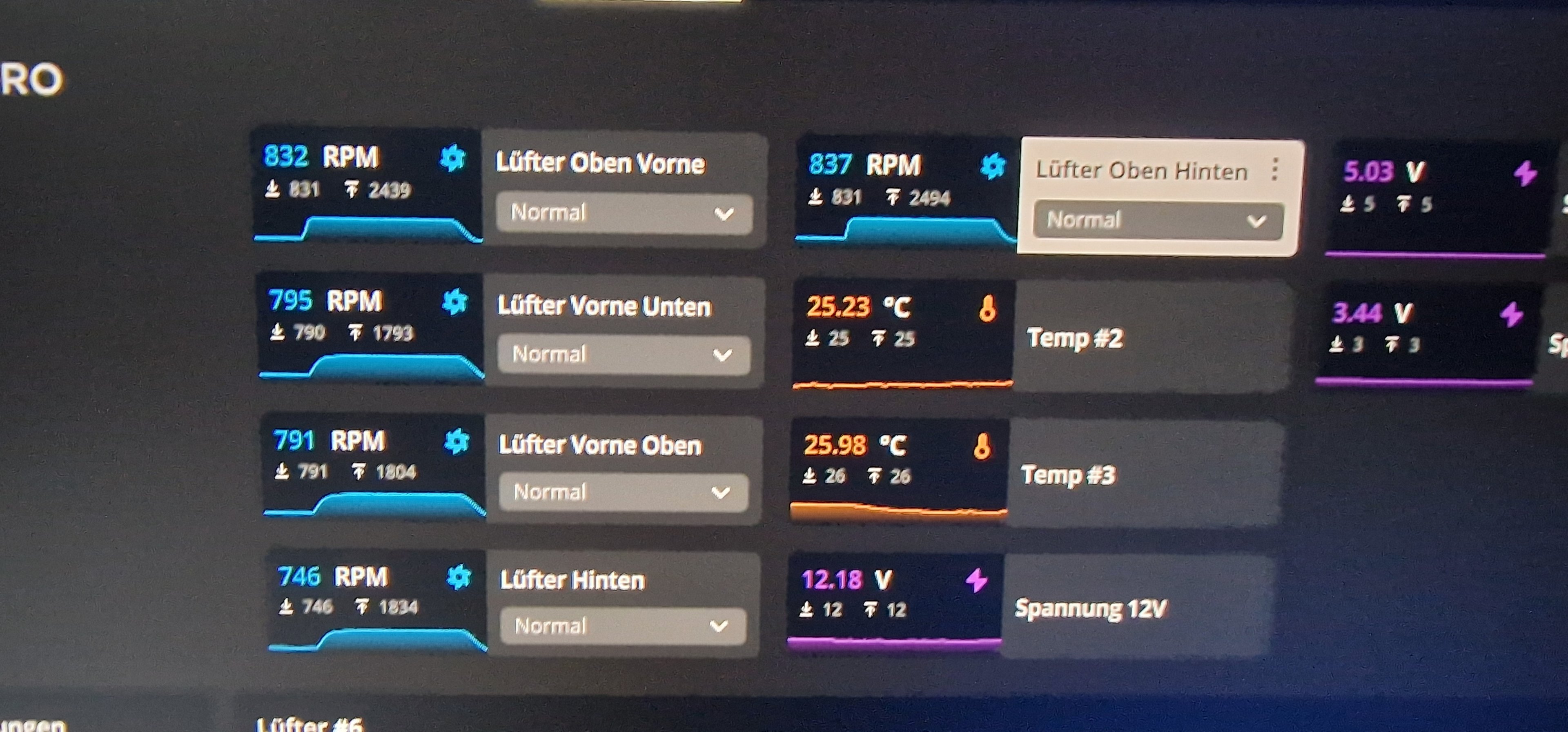 Die Corsair ML Lüfter habe ich jetzt von leise auf Balanced gestellt. Im vergleich zu gestern wo die noch auf Leise waren.