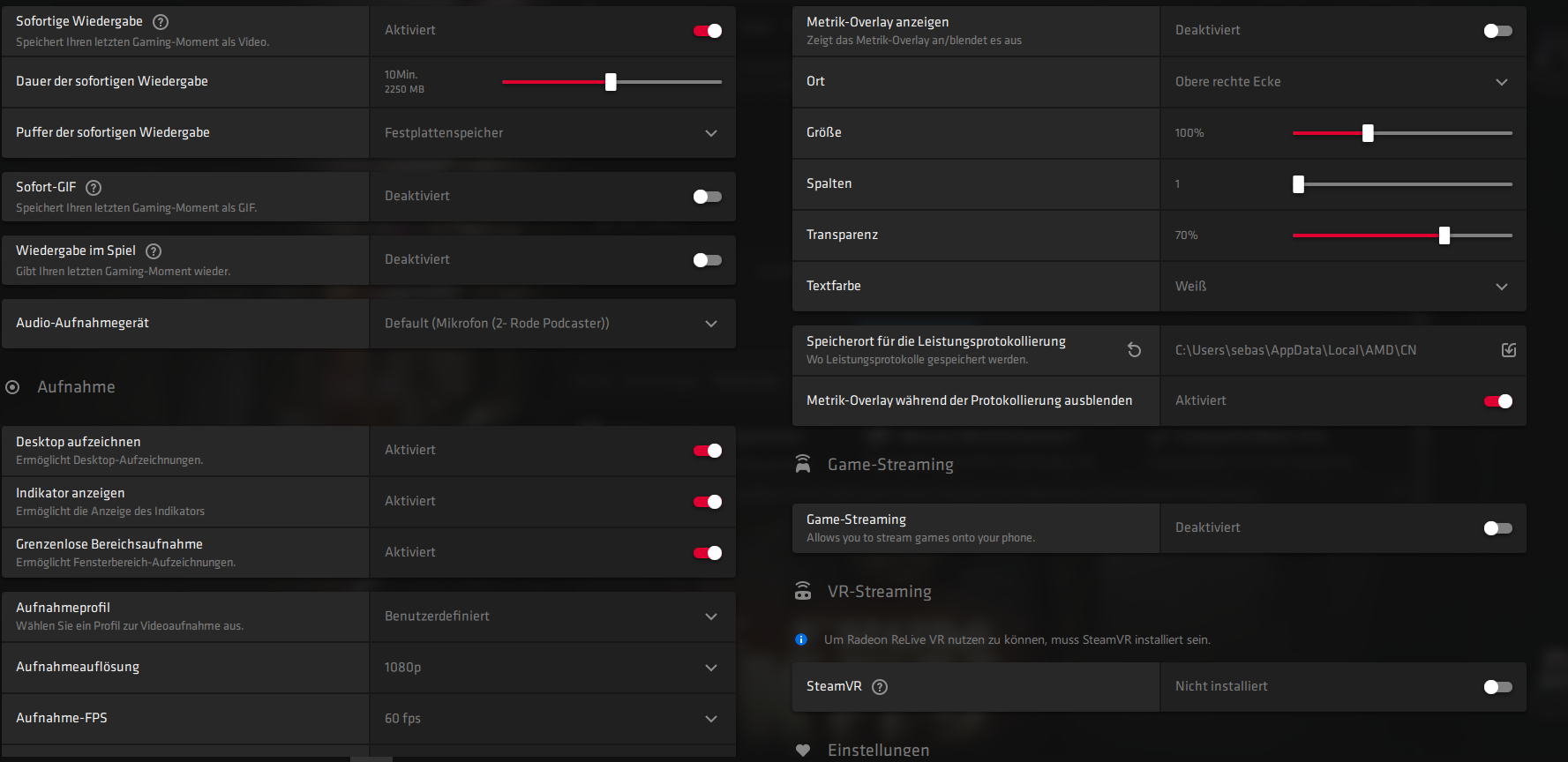 ich habe mir die Radeon Software installiert und habe dort den Replay Modus aktiviert... Ich kann mich hören aber nicht meine Freunde bzw allgemein keine Audio (weder das vom Spiel, noch Musik).
