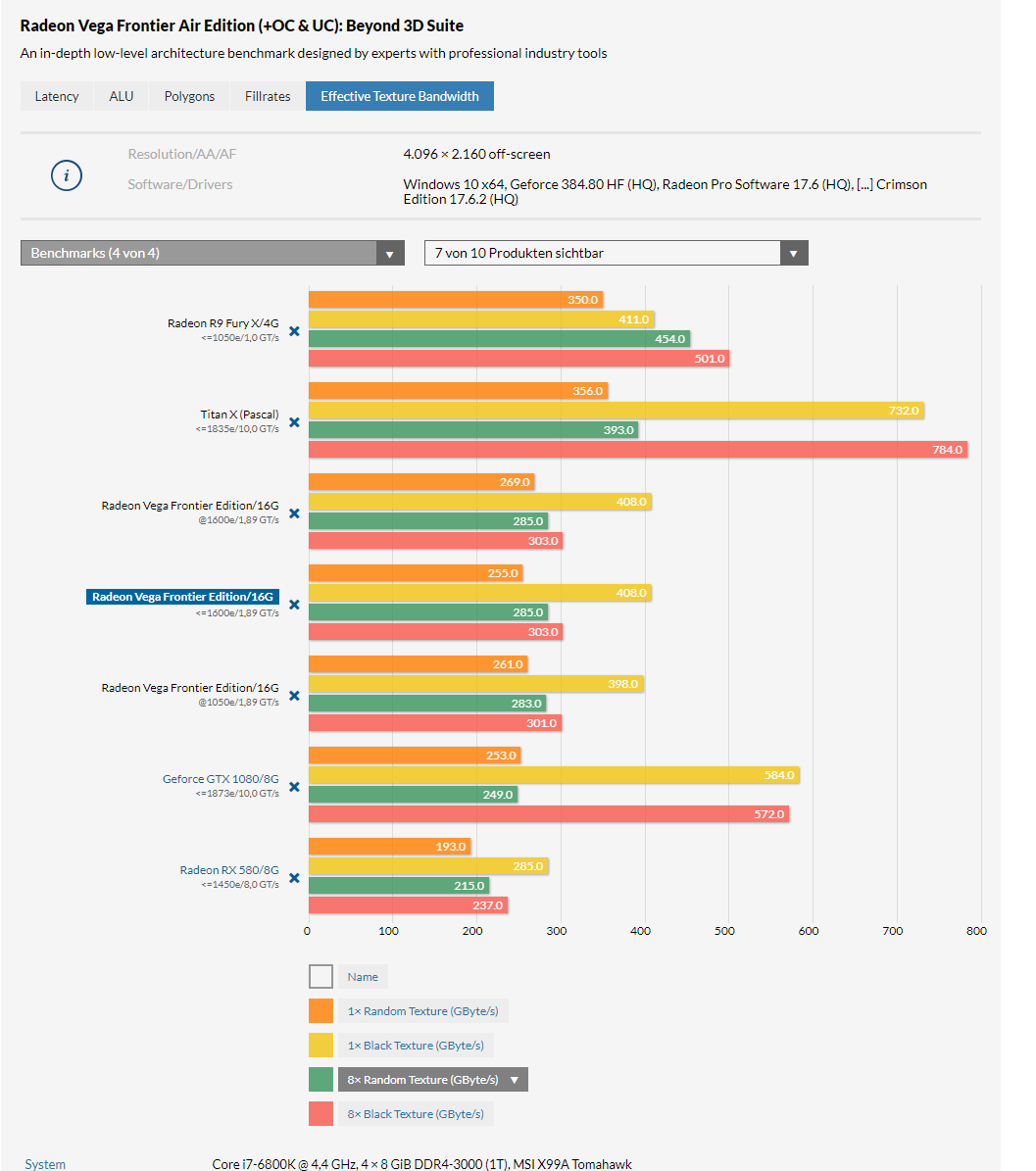 Das erklärt aber nicht die zb 285Gb/s bei 8x Textur Vega Random zu 454 GB/s bei der Fury X.