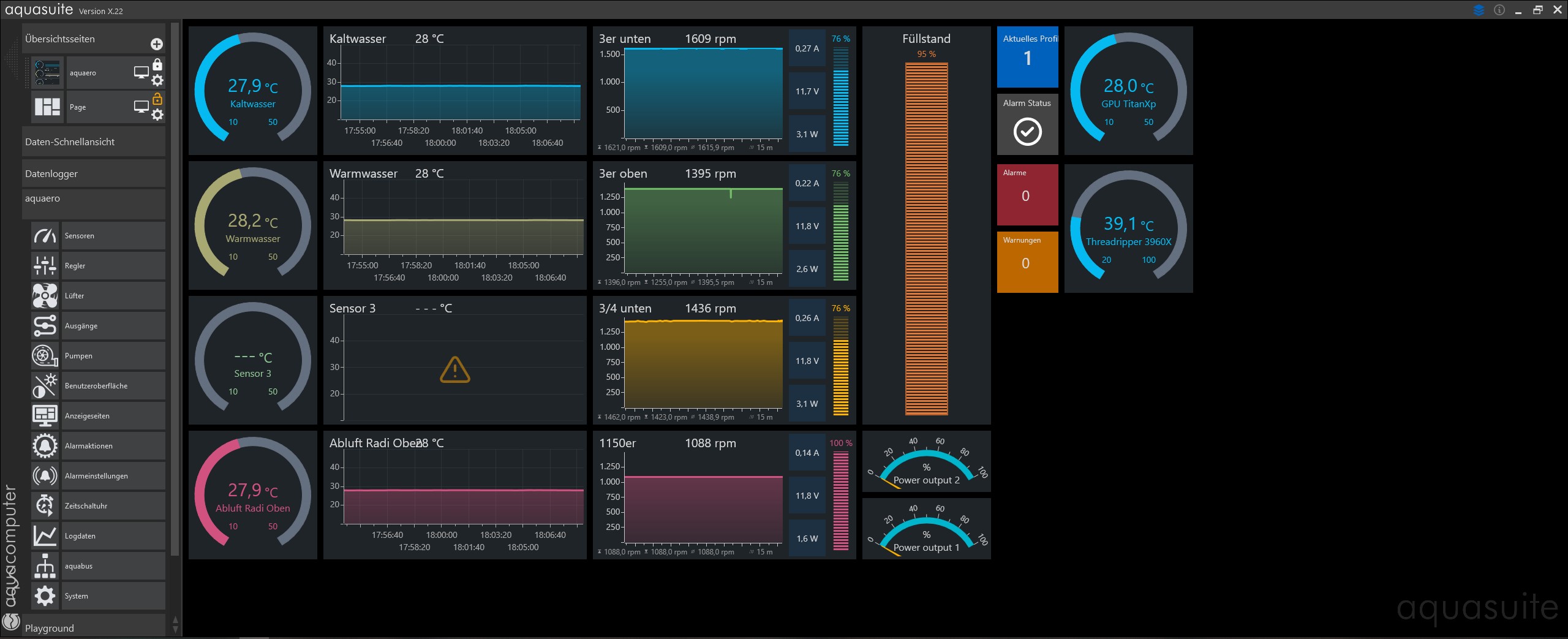 Das ist dann vermutlich für die ganzen Profis. Bin kompletter Einsteiger und will eigentlich nur wissen, wie kühl das Wasser aus dem Radi raußkommt, damit ich auf Basis der Temperatur die Lüfter steuern kann.Humptidumpti schrieb:Wenn du einen Temperatursensor jeweils auf die warme und kalte Seite des Radis montierst und zusätzlich einen Durchflusssensor an den Quadro anschließt kann der Quadro auch die Verlustleistung errechnen. Ist immer ganz interessant zu sehen.