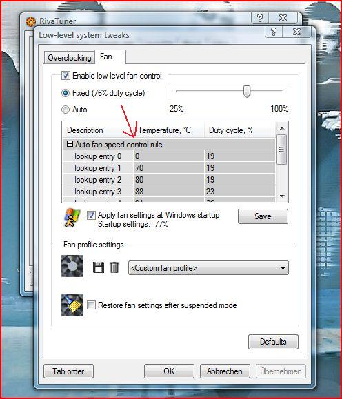 Dann noch was, also ich habe es bisher bei Ati so gemacht, dass ich mit ati Tool das Bios aus der Karte auf den Rechner geladen habe, dann habe ich die Max. Taktraten ermitelt, bin dann etwas darunter geblieben und hab das Bios dahingehend geändert und auf die Karte geflasht. Vorteil, brauche Atitool nicht ständig mitladen zu lassen. (und OC sieht keiner, hehe :-)