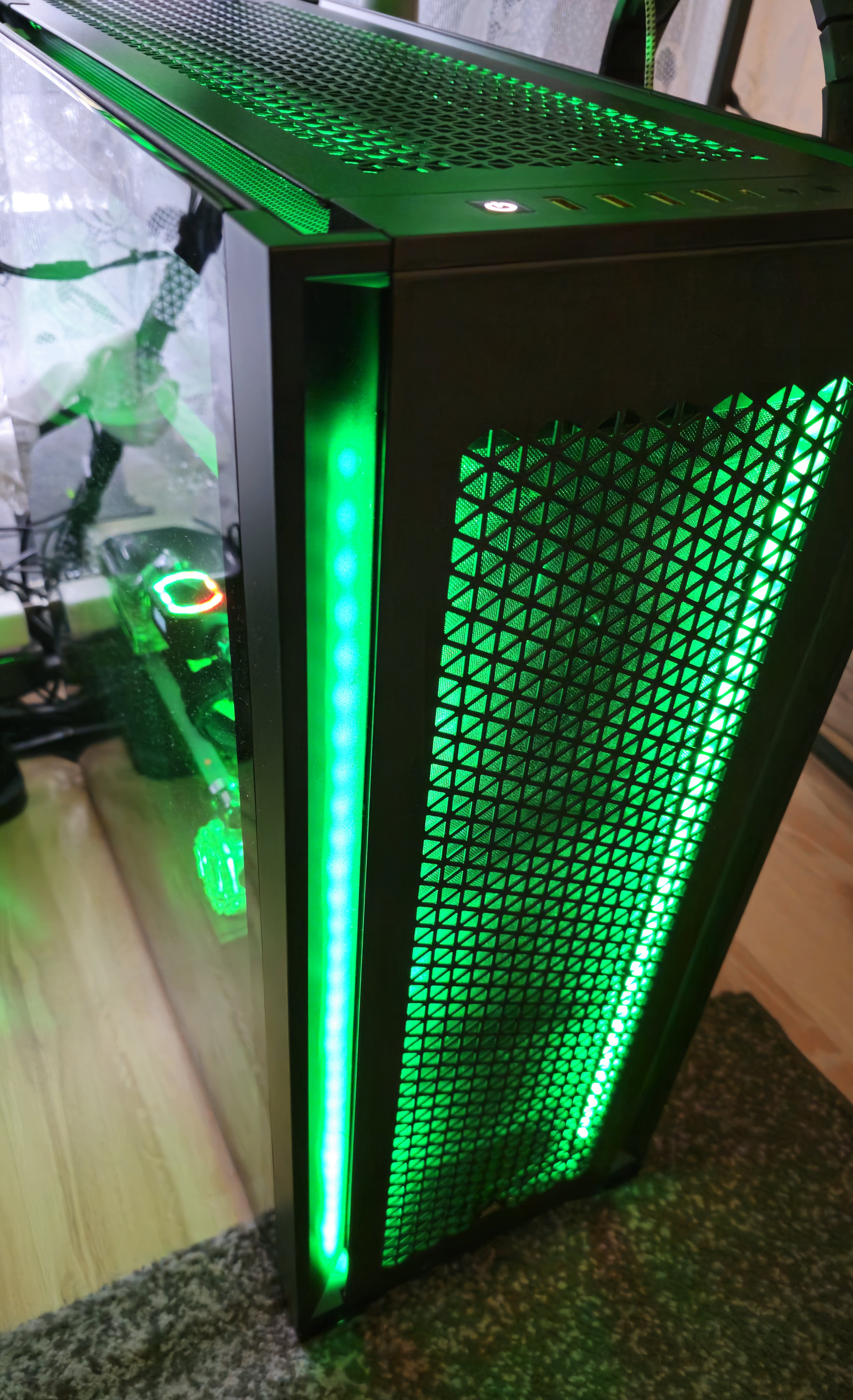 Zum Beispiel mein Gehäuse. Das leuchtet oben und vorne grün.