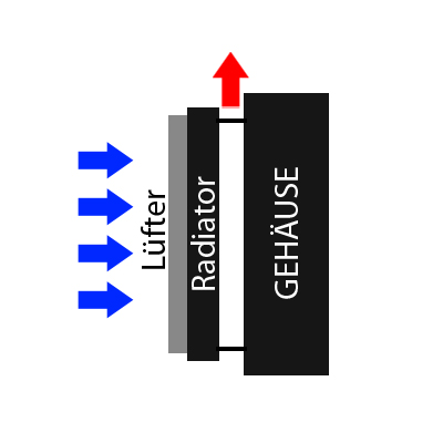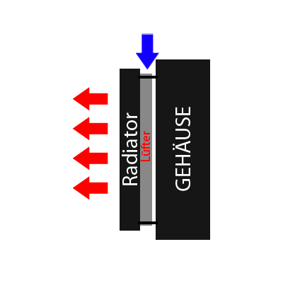 Jetzt zu meiner Frage, sollen die Lüfter auf das Gehäuse durch den Radiator blasen(!) und wie viel Abstand muss dann der Radiator vom Gehäuse haben oder die Lüfter lieber vom Gehäuse durch den Radiator blasen(2)!
