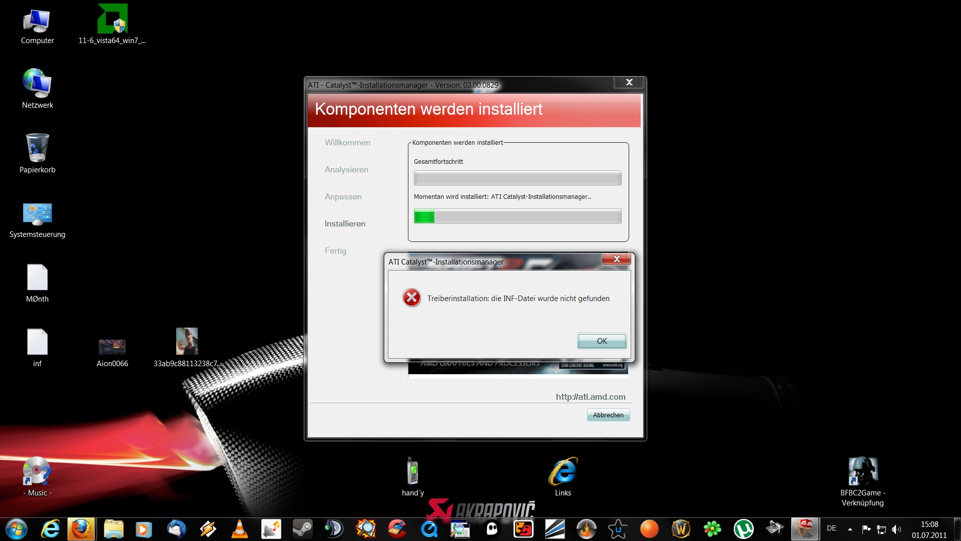 Bekomme bei der install... einen fehler und kann teiber nicht install 11.6 für win 7/64