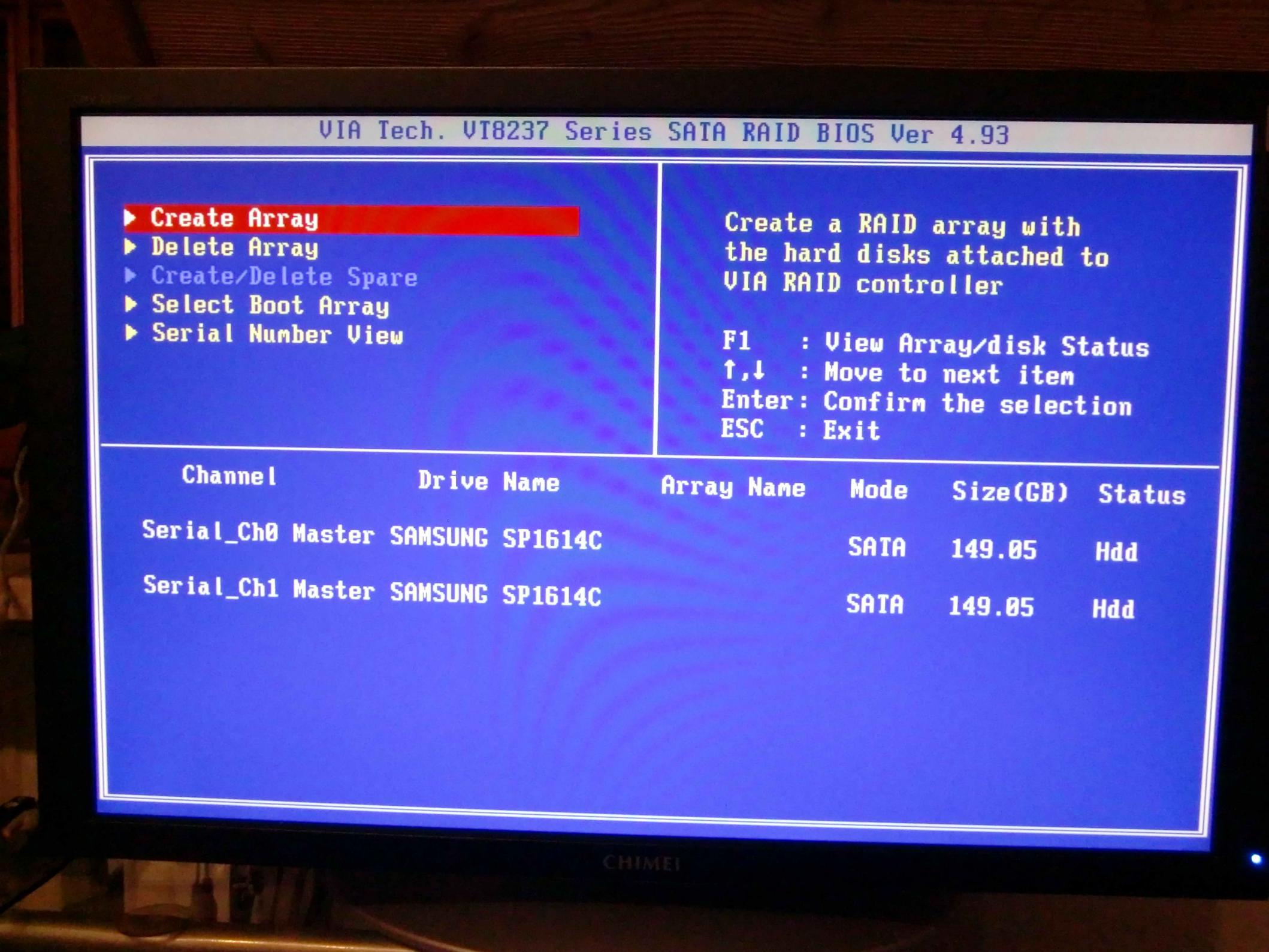 Award Bios, Via onboard Raid 0 mit 2x 160Gb Samsung HDD