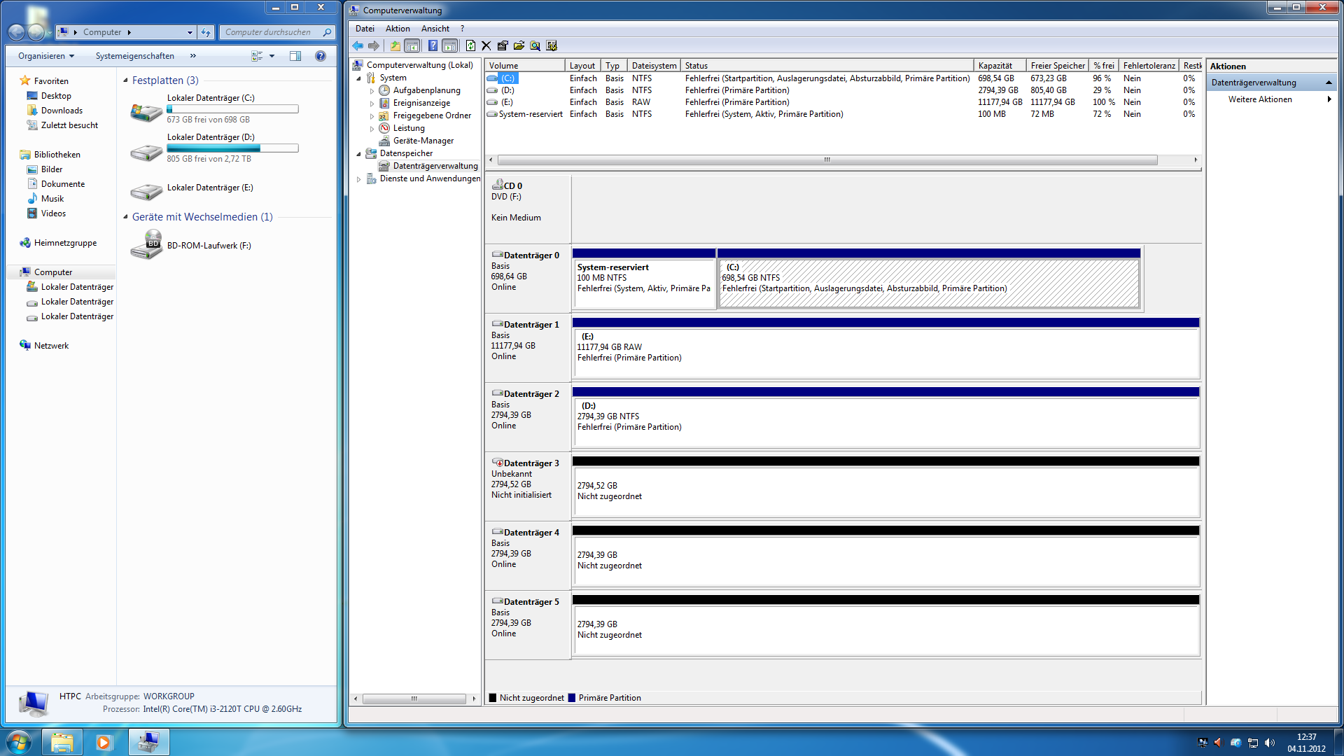 1x 3 TB Seagate HDD (für Backups der Workstation, hier ist alles weiterhin in Ordnung)