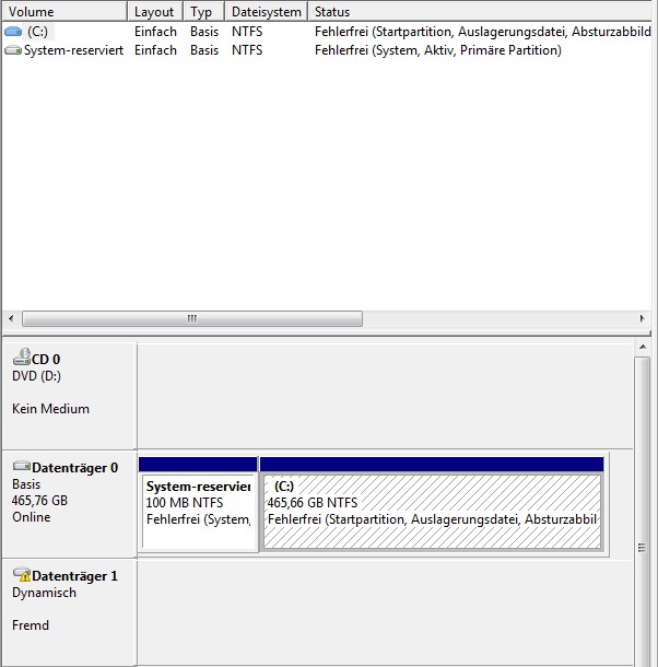 - Basis oder dynamisch oder GPT, mit einer Partition; oder fehlerhaft (dann ist das deine erste RAID-Platte); versuche bei einer eventuellen Laufwerksbuchstabenzuordnung NICHT, diesen im Explorer anzeigen zu wollen! Bringt nichts und kann nur schaden...