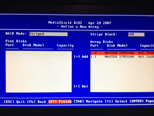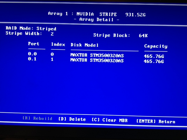 Mein PC kann nicht mehr vom installierten Raid 0 booten, weshalb ich gemäss oben erwähntem Thread vorging und das alte Array gelöscht habe (DELETE).