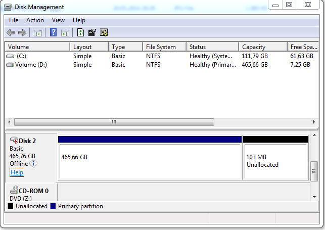 nun hab ich mir ein von dieser seite empfohlenes analyse programm geladen und das mal ausgeführt. ich weiß nicht, ob ich da was falsch mache, aber er zeigt mir hier nur die platte mit windows, die anderen sind nicht zu sehen (anhang 2). Nun hab ich noch das disk management von windows aufgemacht und hier sagt er mir, dass disk 2(von den raid platten) offline is, da sie eine "signature collision" mit einer platte die online ist hat(anhang 3)??