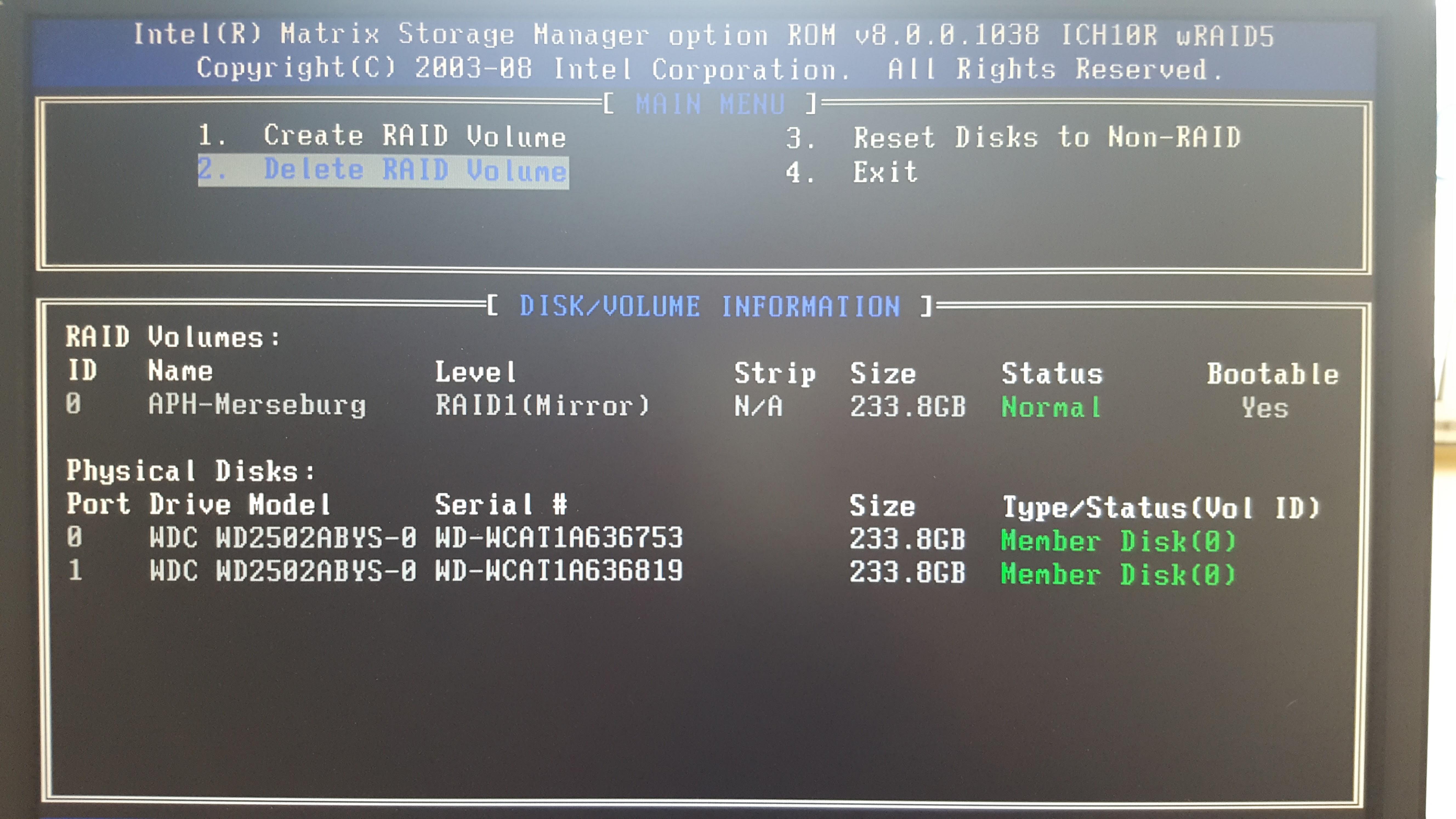 Ein Bekannter hat einen PC geschenkt bekommen mit einem vorhanden RAID 1 soweit so gut, nur möchte er jetzt das dass RAID 1 (APH-Merseburg das ist der Name des RAID) geändert wird zB. in den Name der Festplatte (WD250xxxx). In der Intel Matrix Storage Console ist der derzeitige Name ersichtlich (siehe Bild). Frage, geht das so einfach ?