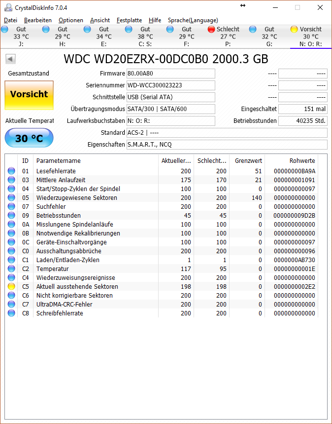 Das Problem der alten aktiven Platte, sie hat viele Sektoren, die kaputt sind.