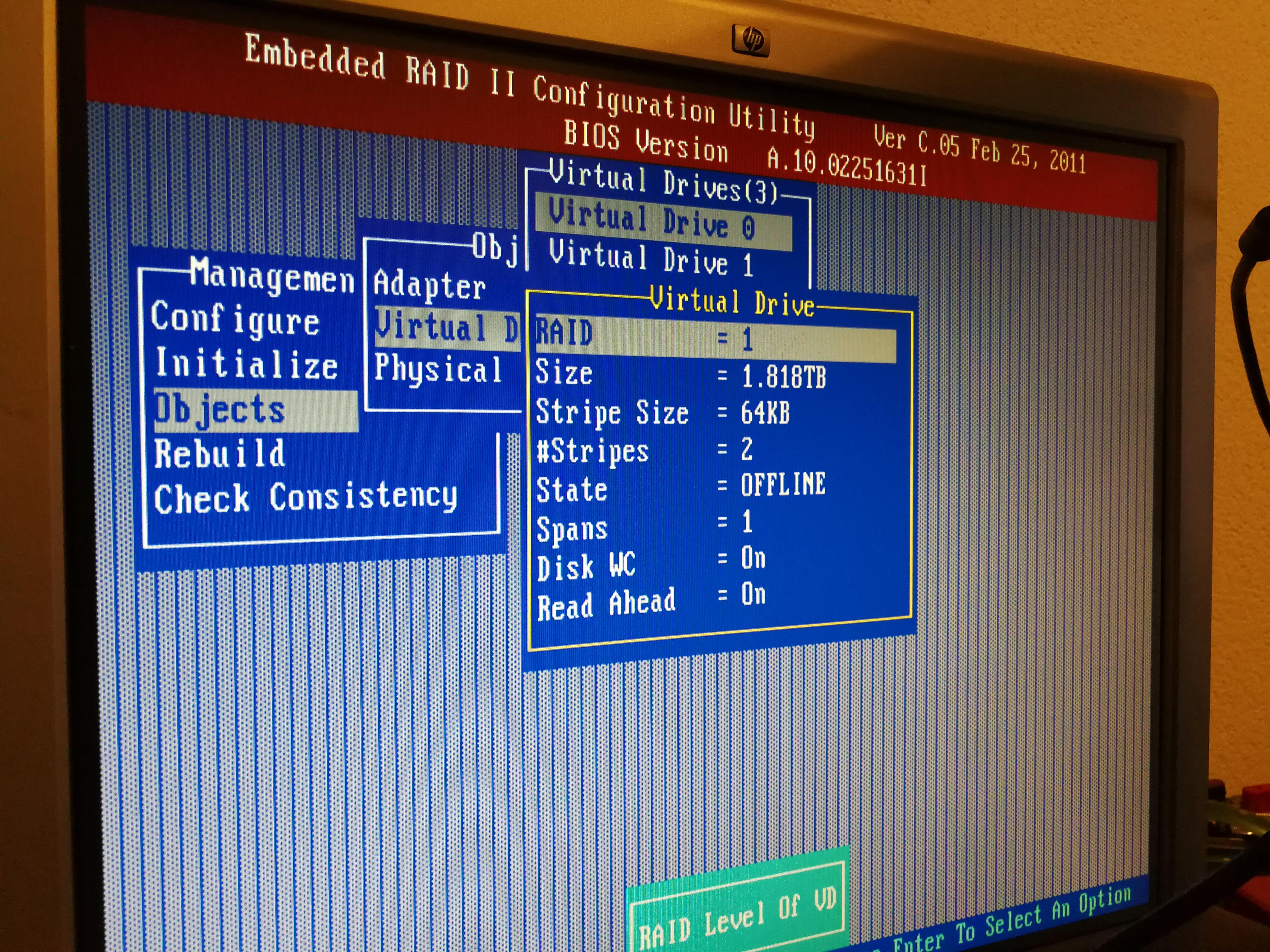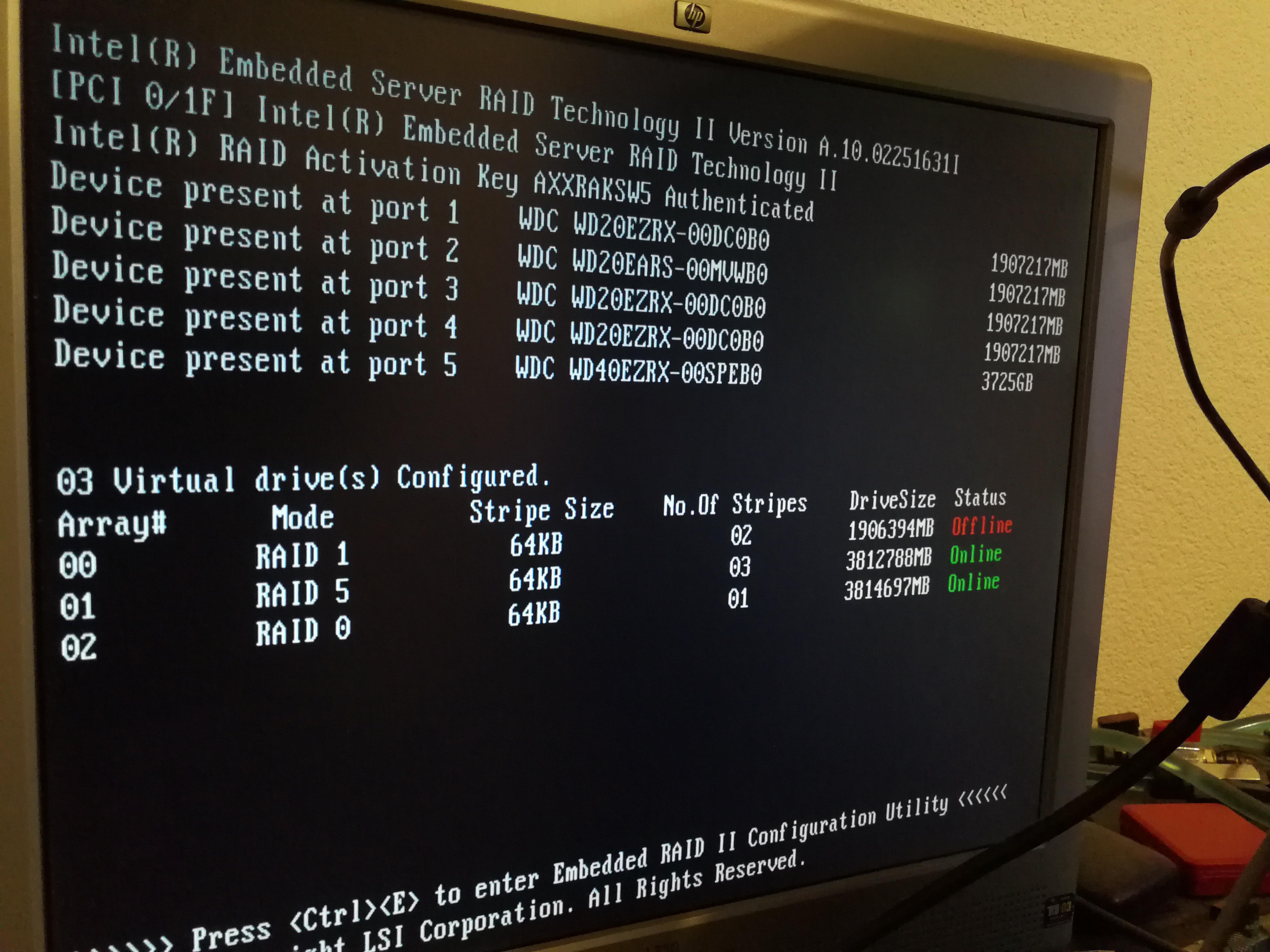 Nun das RAID 1 ist seit dem letzten Neustart auf OFFLINE und ich kriege es nicht mehr auf Online, egal was ich anstelle.