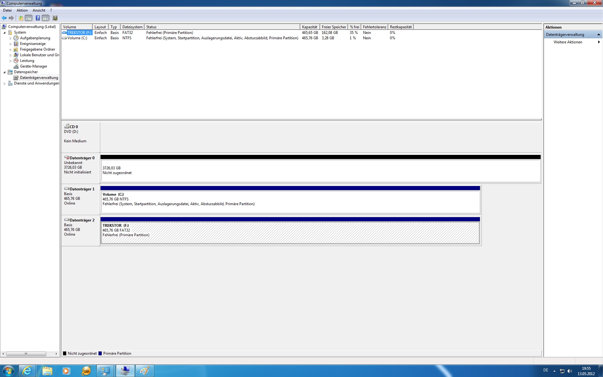 Screenshot der Datenträgerverwaltung in den Anhang, Initialisieren ablehnen!