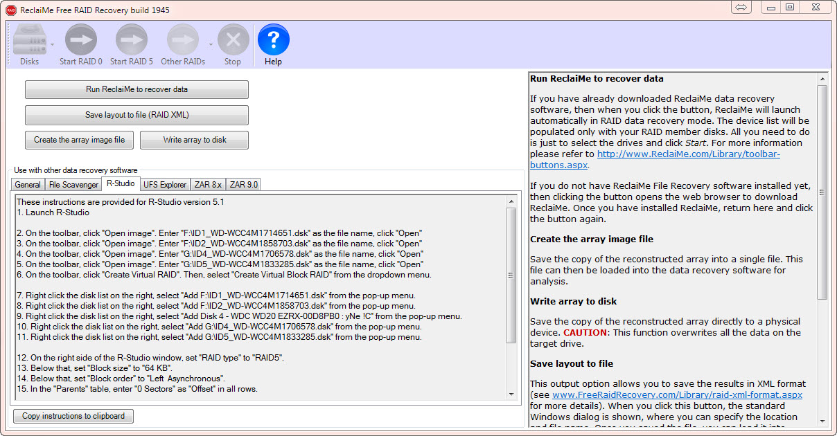 Wenn ihr die Details (HDD-Anzahl, Block Size, HDD-Reihenfolge, etc.) zu Eurem "früheren" RAID-Verbund wisst, benötigt ihr die Applikation ReclaiMe Free RAID Recovery nicht. In allen anderen Fällen hier der Link zum Download