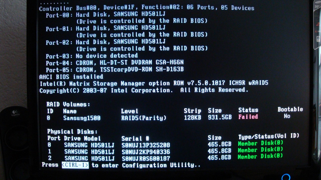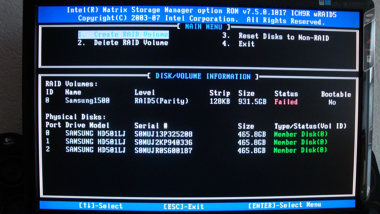 Habe 3 gleiche Samsung Platten in nem Raid 5. Habe ein Gigabyte P35 (glaube DS3R) Board mit nen Intel onboard Raid Controller.