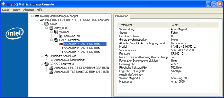 Hab jetzt über RAID gebootet. Ist total langsam!