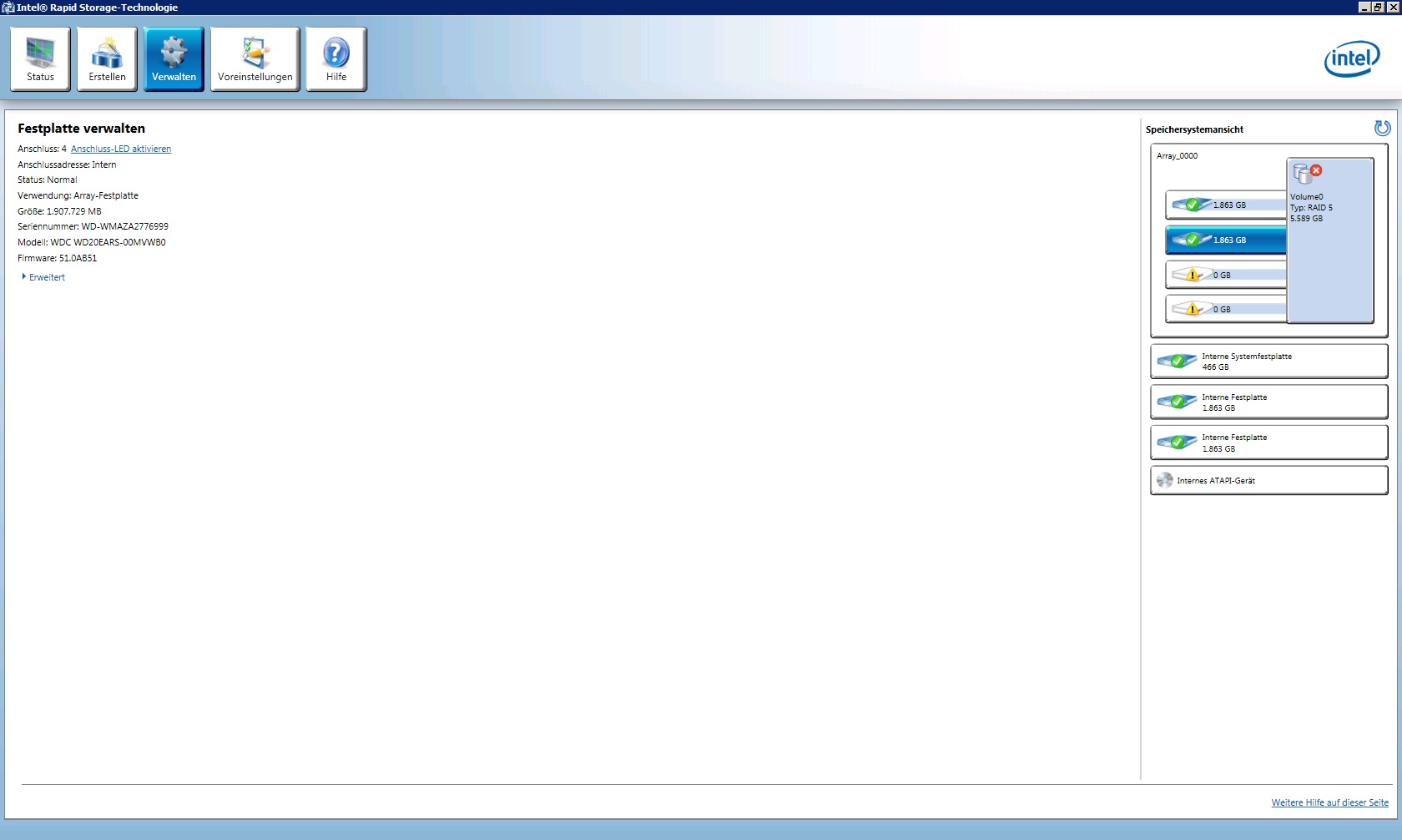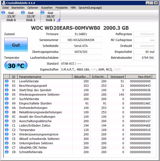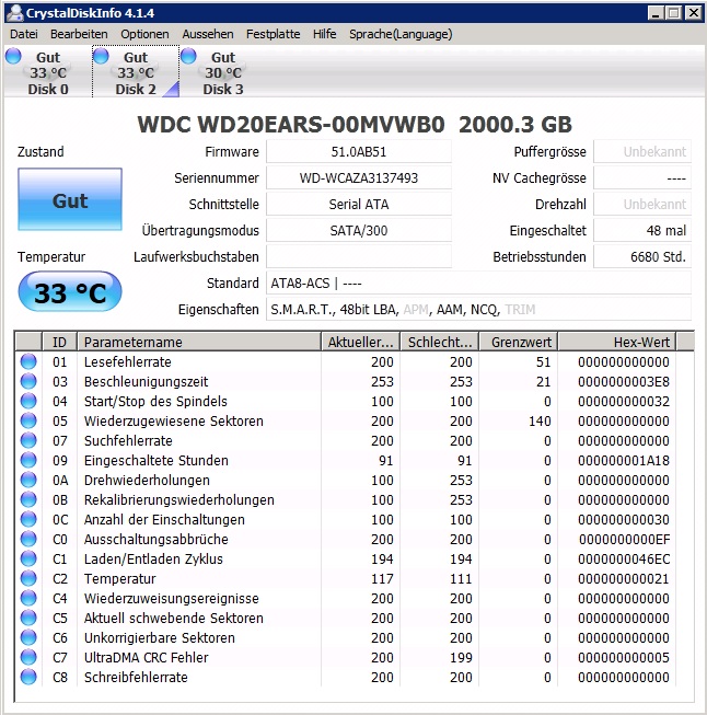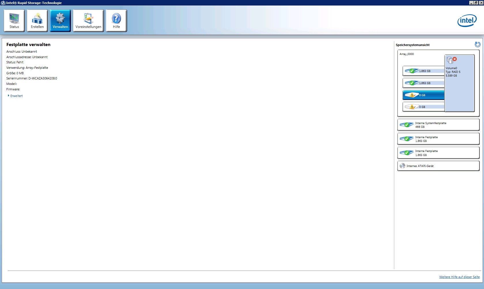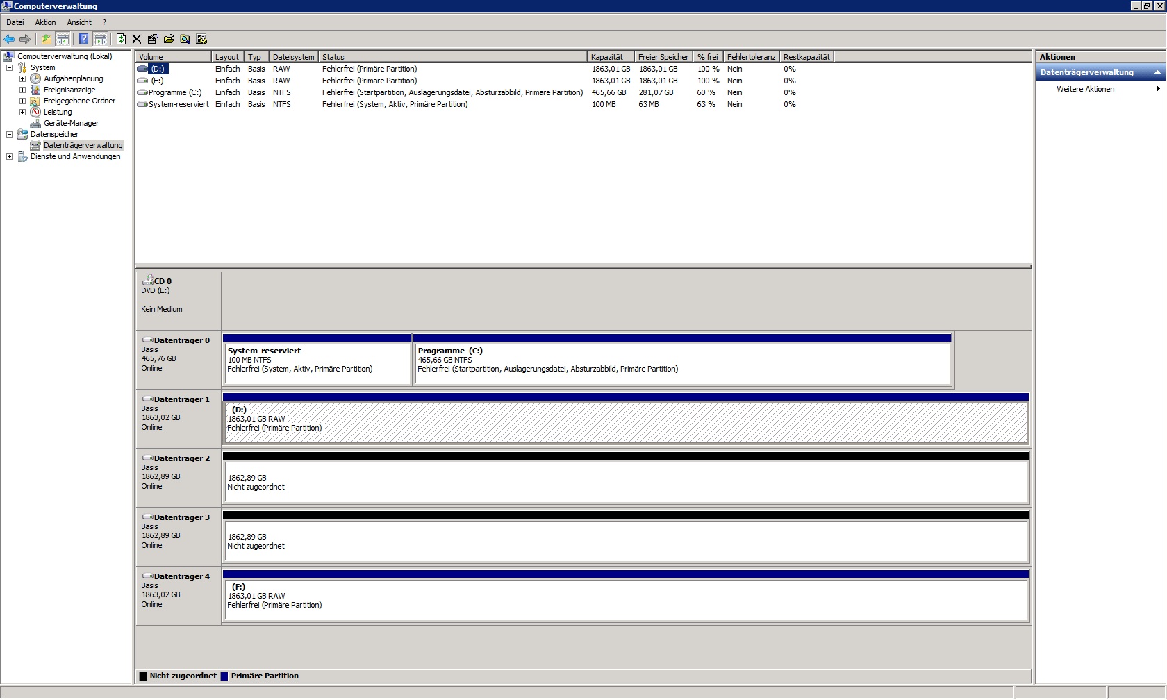 Die zwei rausgefallenen RAID-Platten werden jetzt als Datenträger 2 und 3 angezeigt, daher im HxD physical disk 3 und 4