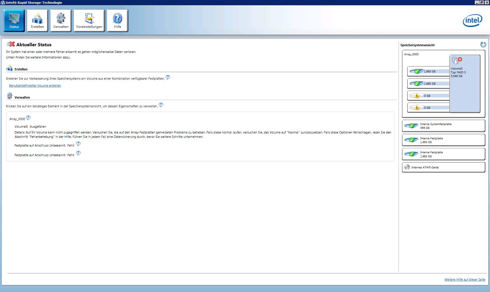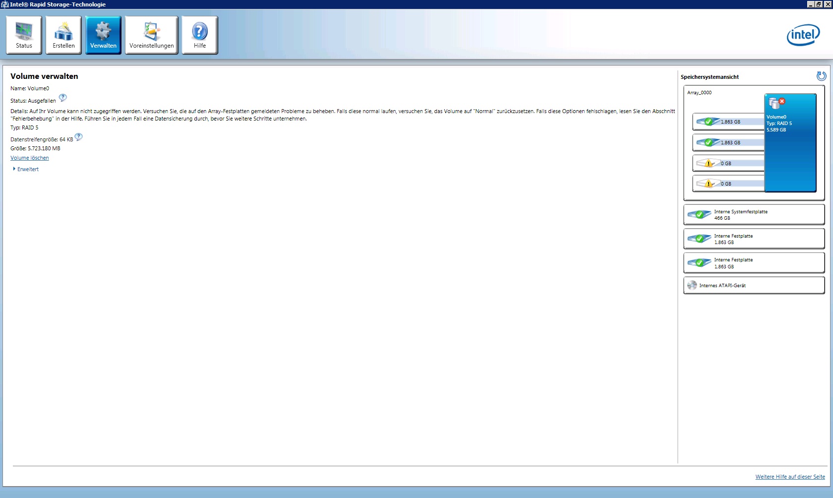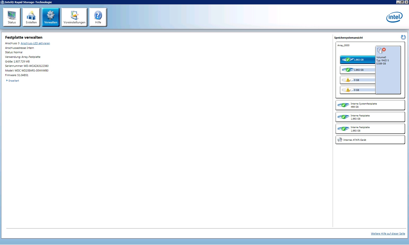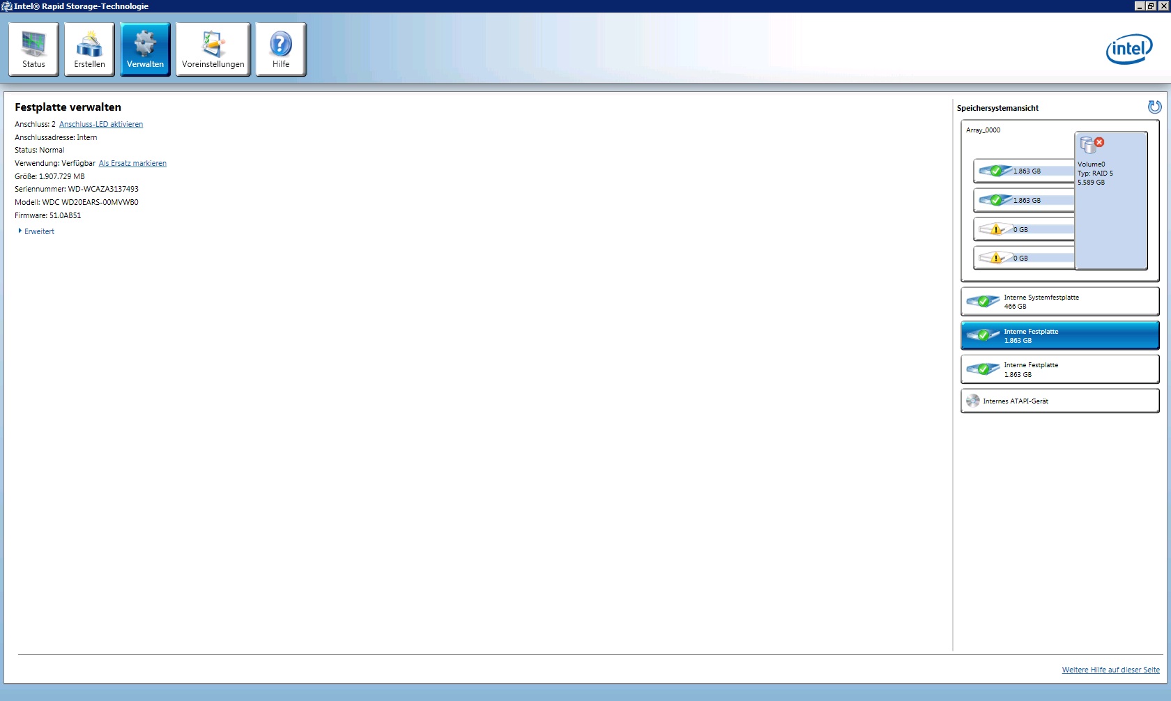 Die zwei rausgefallenen RAID-Platten werden jetzt als Datenträger 2 und 3 angezeigt, daher im HxD physical disk 3 und 4