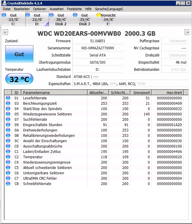 1D1C1115CE0 3237373639393900 .. Serial: "WD-WMAZA2776999"