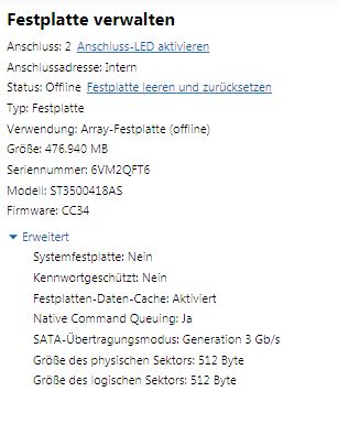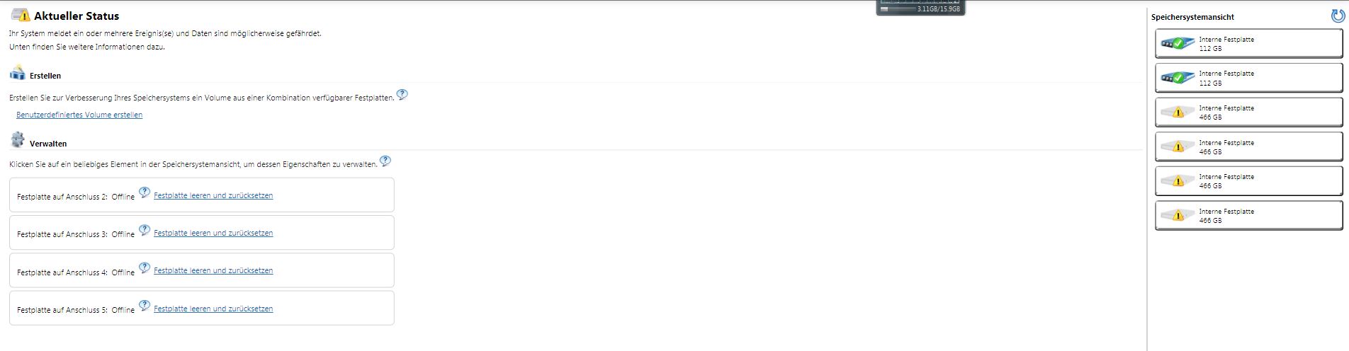 Heute morgen mach ich den Rechner wieder an und da meldet mir mein PC den Totalausfall aller vier Raid 5 Festplatten. Der Status ist: Offline