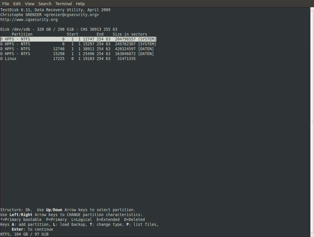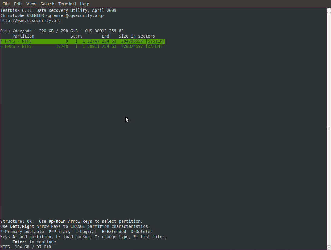 Wenn ich mir die Platten z.B. mit GParted oder einer Ubuntu-Live-CD ansehe, wird die Spanning-Platte auch noch angezeigt und ich habe Zugriff auf die Daten, aber die beiden Mirror-Platten werden als unallocated geführt (und erscheinen in Ubuntu nicht).