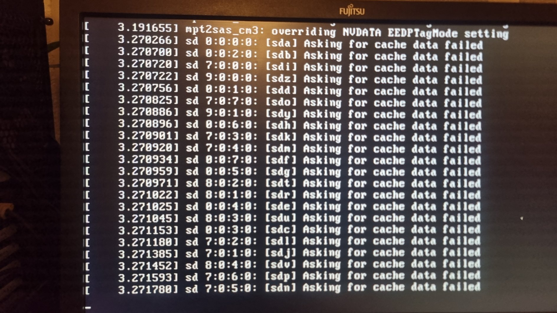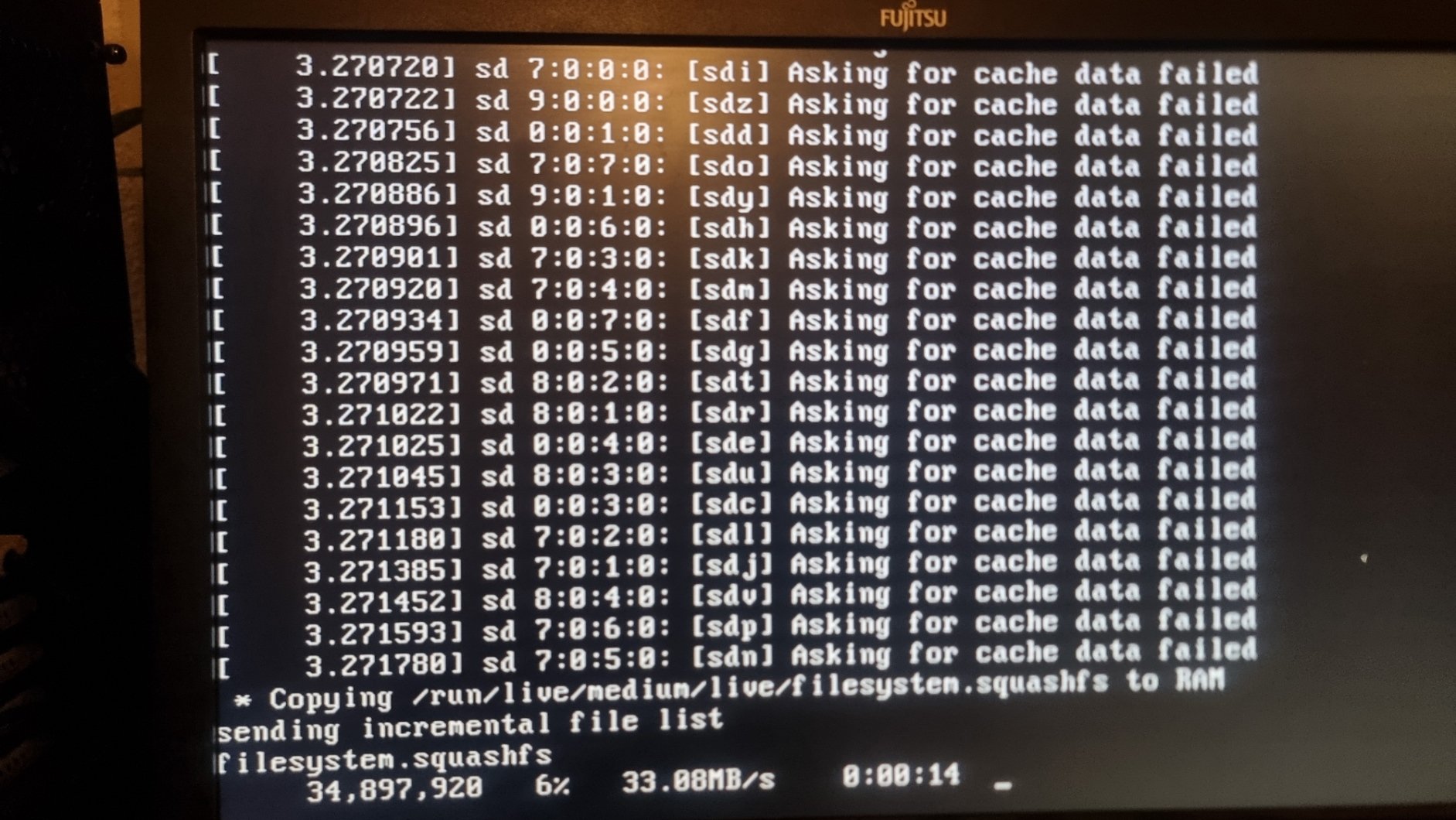 Was mir aufgefallen ist: Wenn der gparted bootet, bekomme ich zu den Platten fehlermeldungen aufgelistet (siehe screenshot): "Asking for cache data failed"