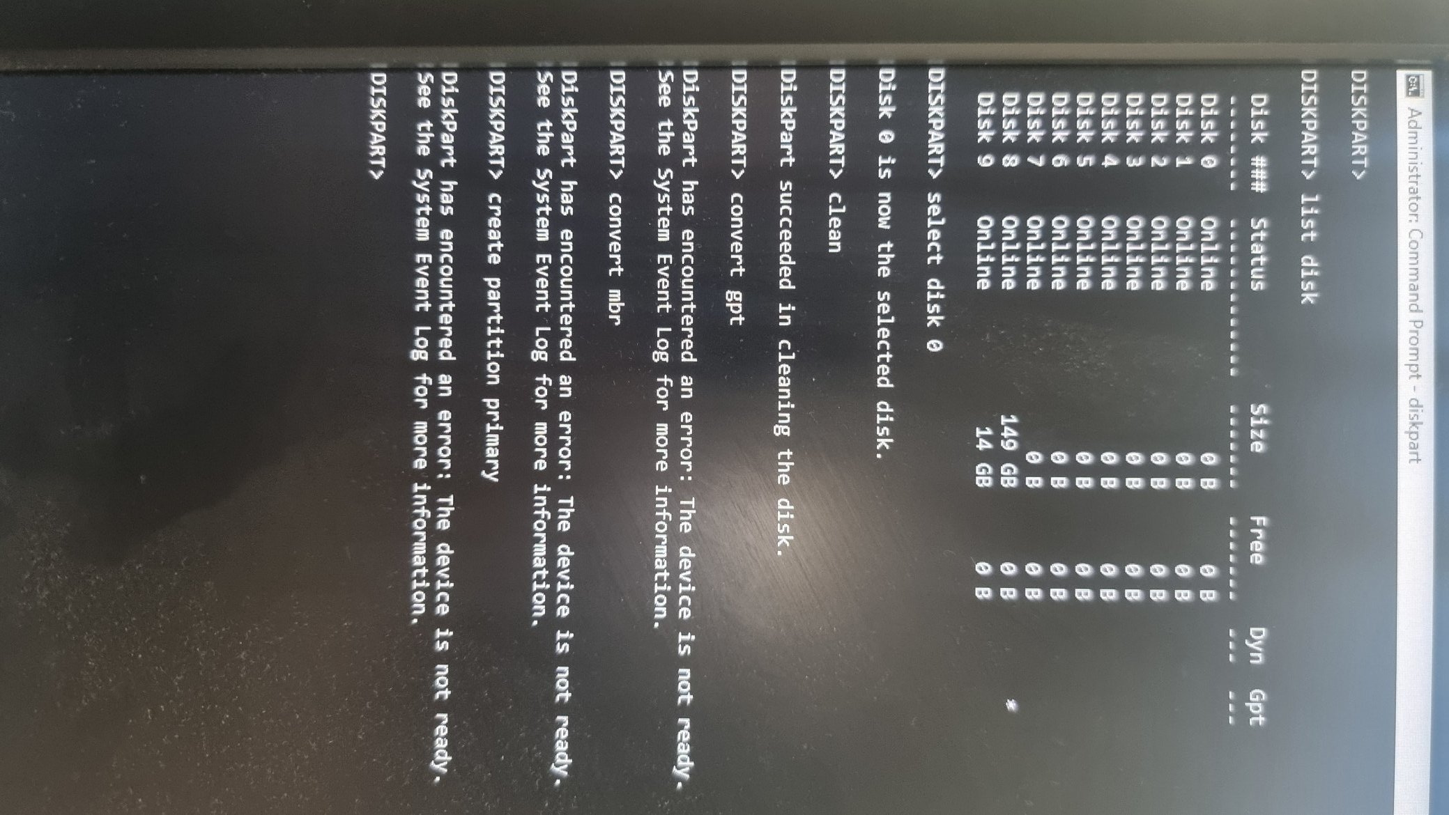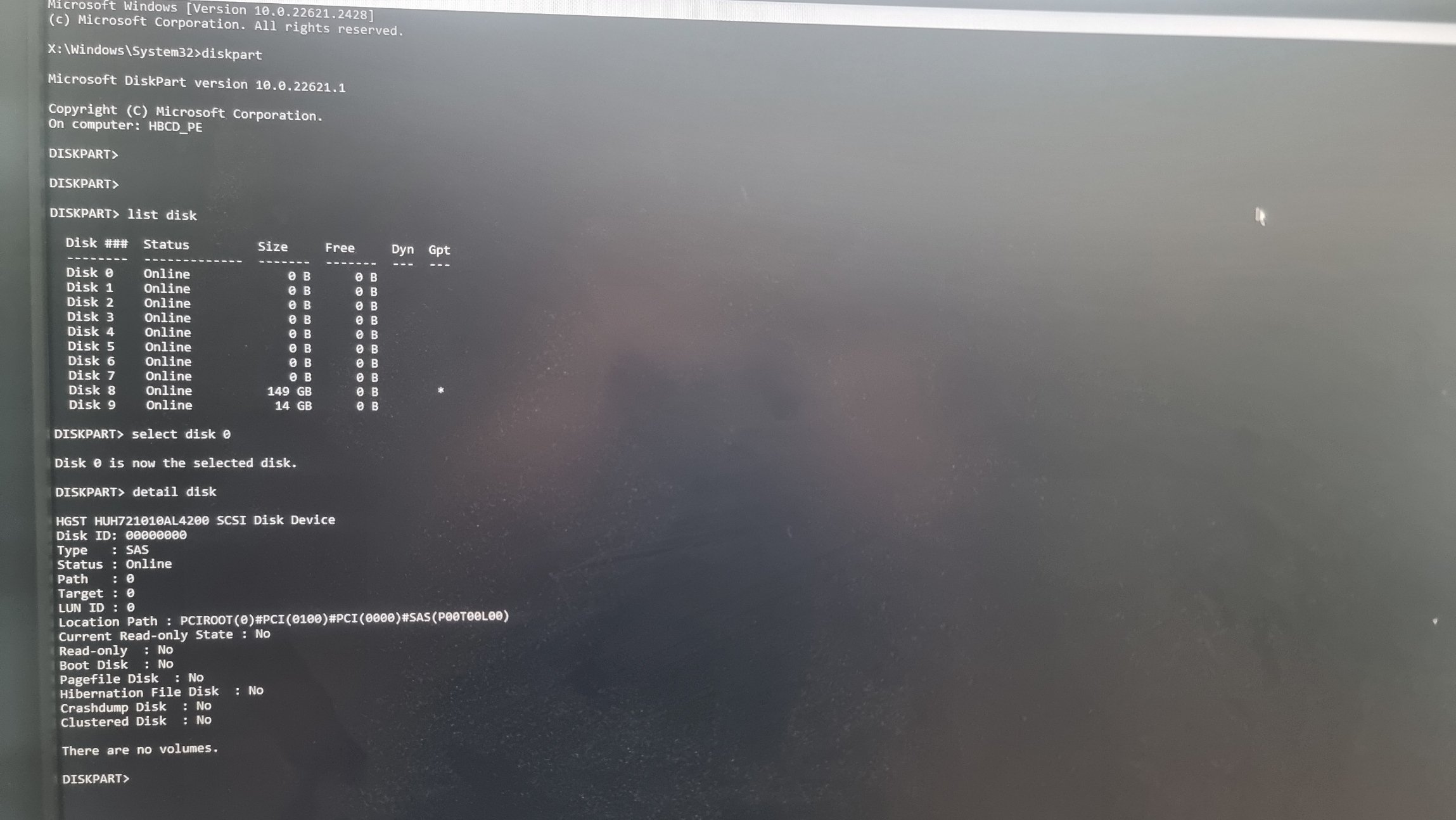 Was ich auch absolut nicht begreife ist, warum die Platten unter diskpart mit 0 GB angezeigt wurden.