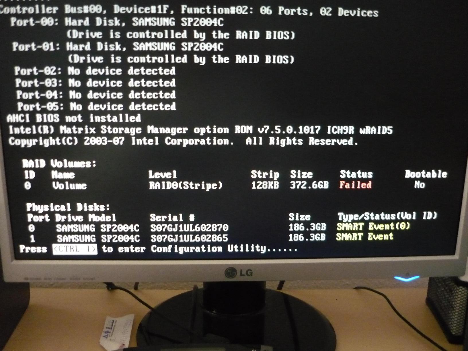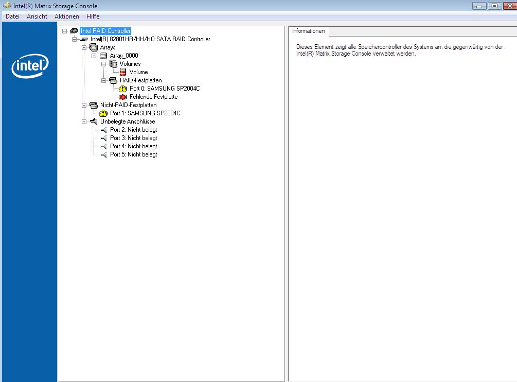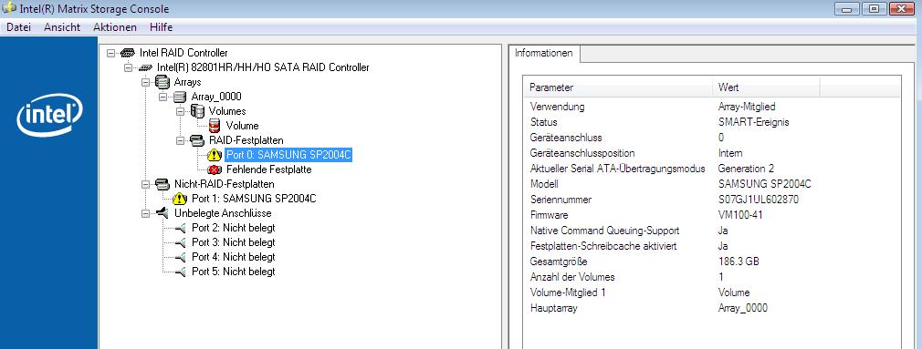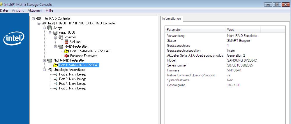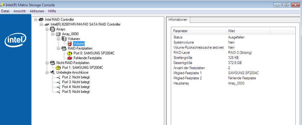 Der Grund war schnell gefunden, Raid0(Stripe) Status Failed( Foto im Anhang).