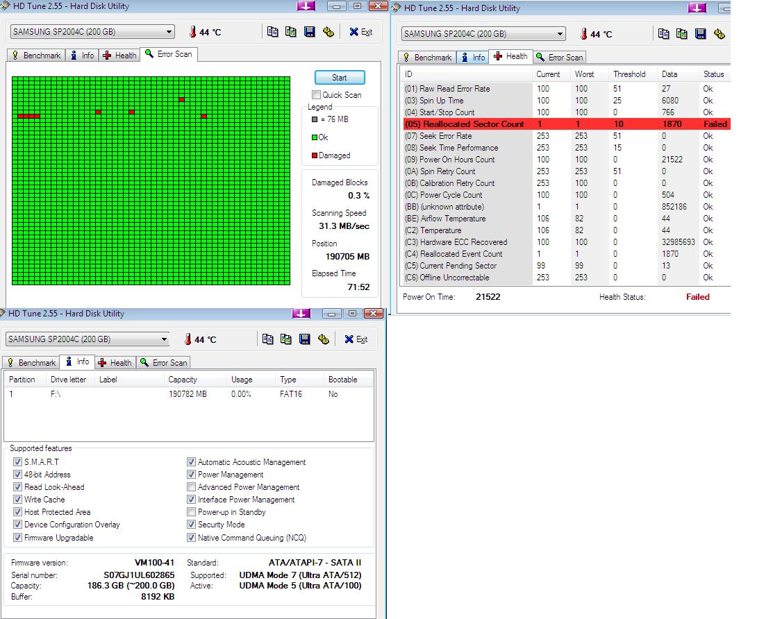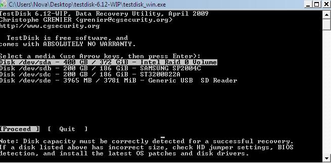 Im Raid waren 2 Samsung Festplatten SP2004C, leider zeigt Testdisk nur noch eine an.