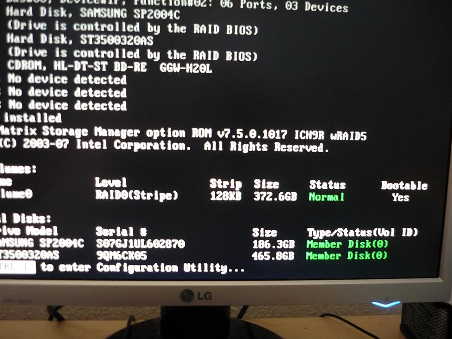 Auf keinen Fall ein chkdsk auf die erste Partition oder vom RAID booten einstweilen.