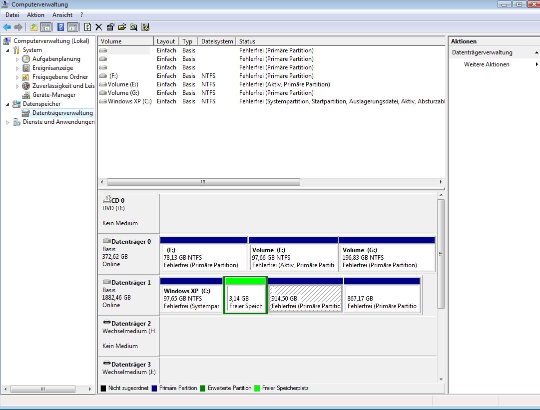 Ein weiterer Hinweis auf die falsche Plattenreihenfolge ist auch, dass derzeit keine der 4 Partitions ansprechbar ist, und die Extended keine logischen Partitions enthält.