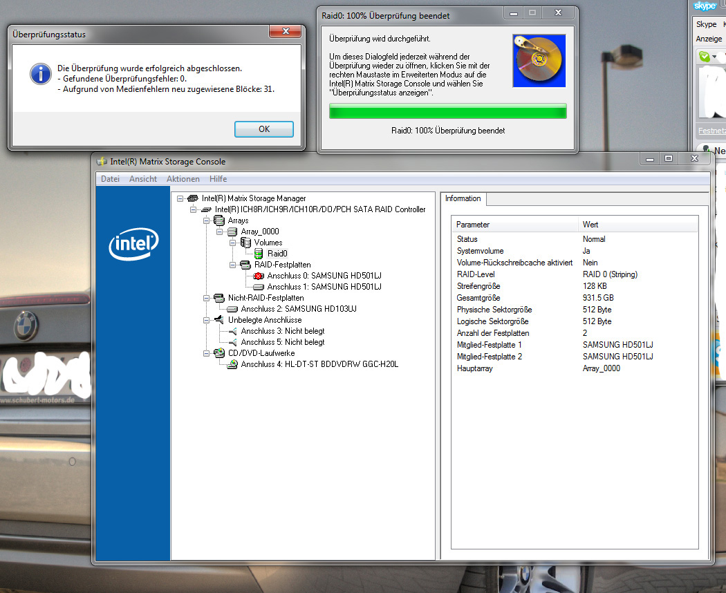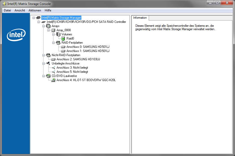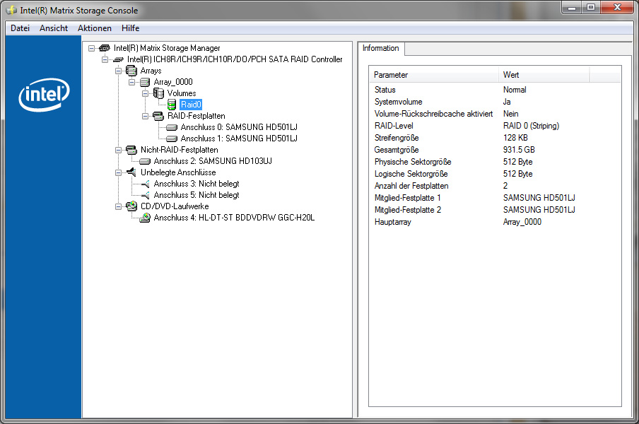 Der Rechner startet aber ganz normal! Ich bekomme dann wenn Win7-Prof. läuft vom Intel-Storage-Manager die Meldung: