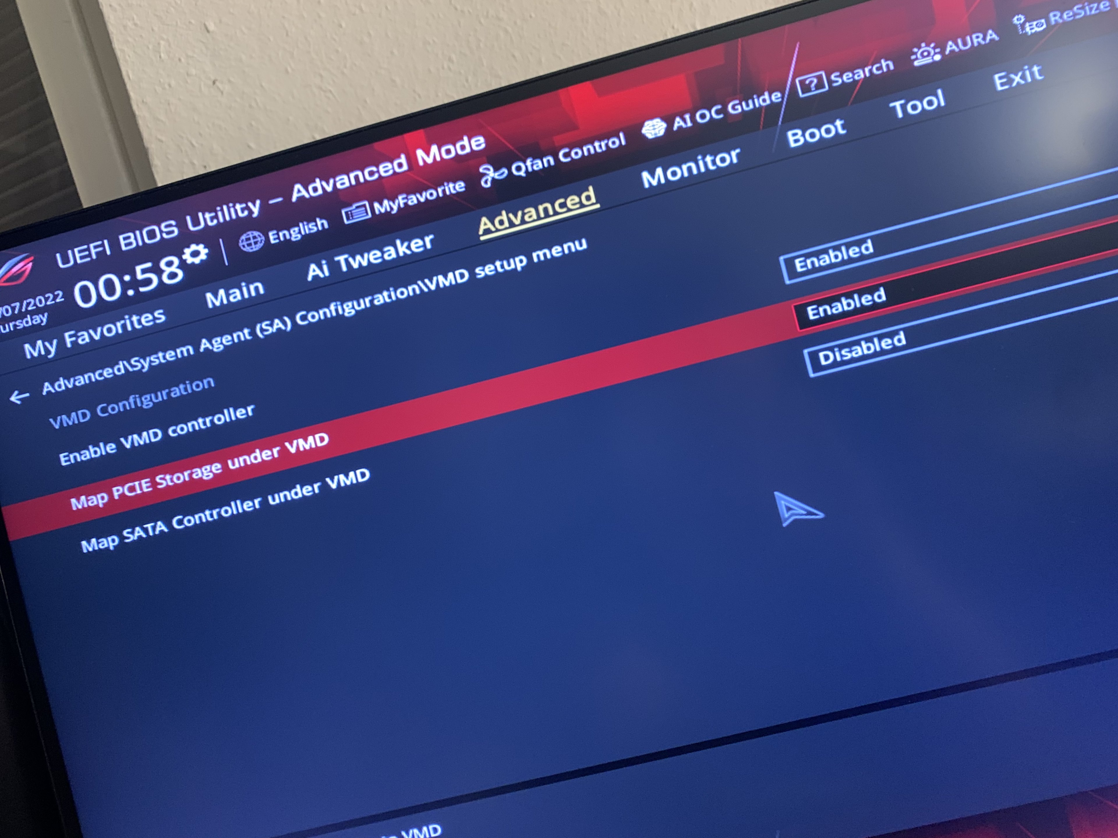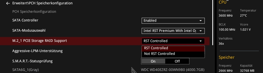 Wenn ich jetzt im Bios VMD Aktiviere und unter Intel Rapid Storage