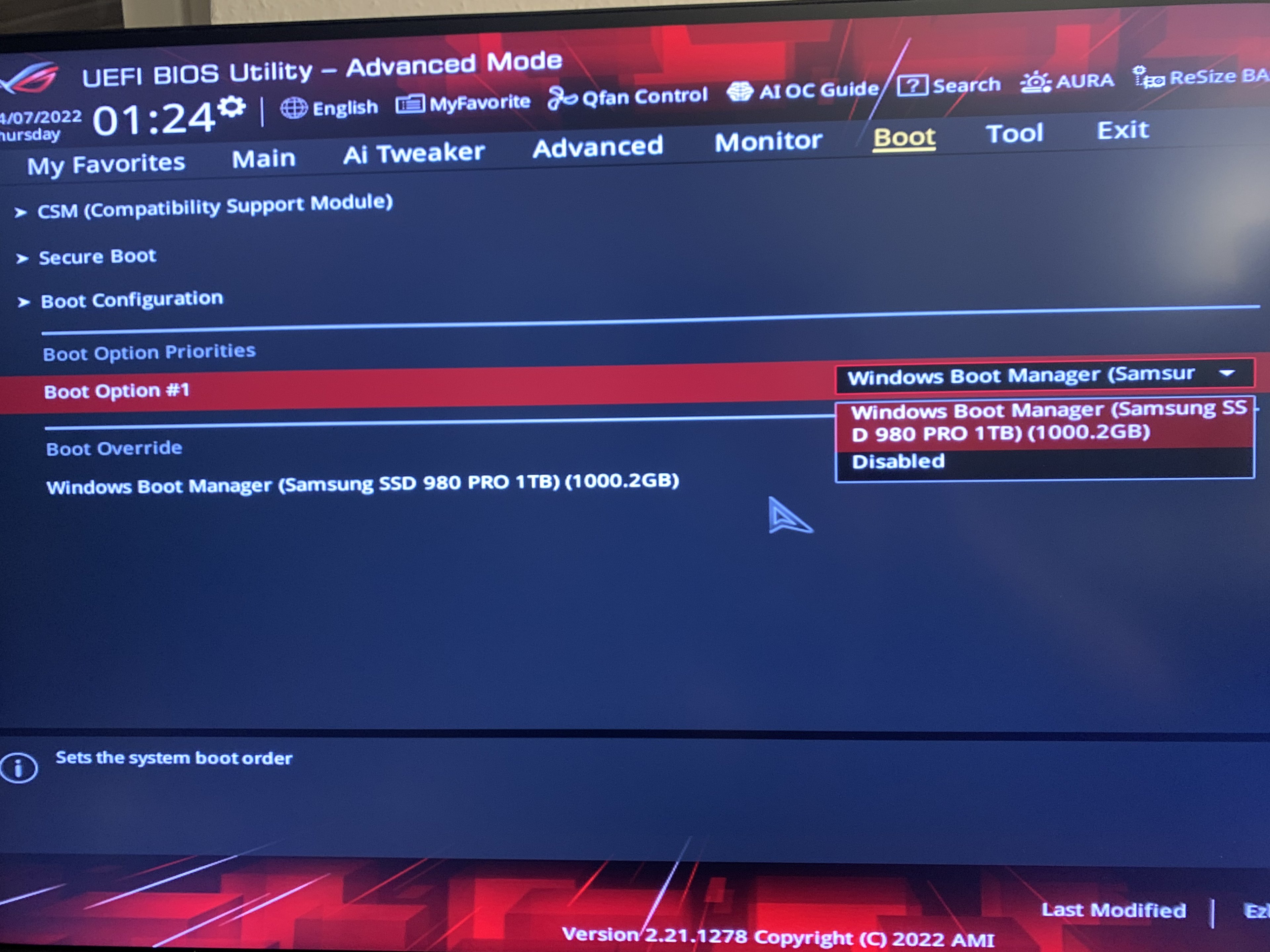 Windows 11 ist unter einer eigenen NVME installiert und ist im NVME Slot 1.
