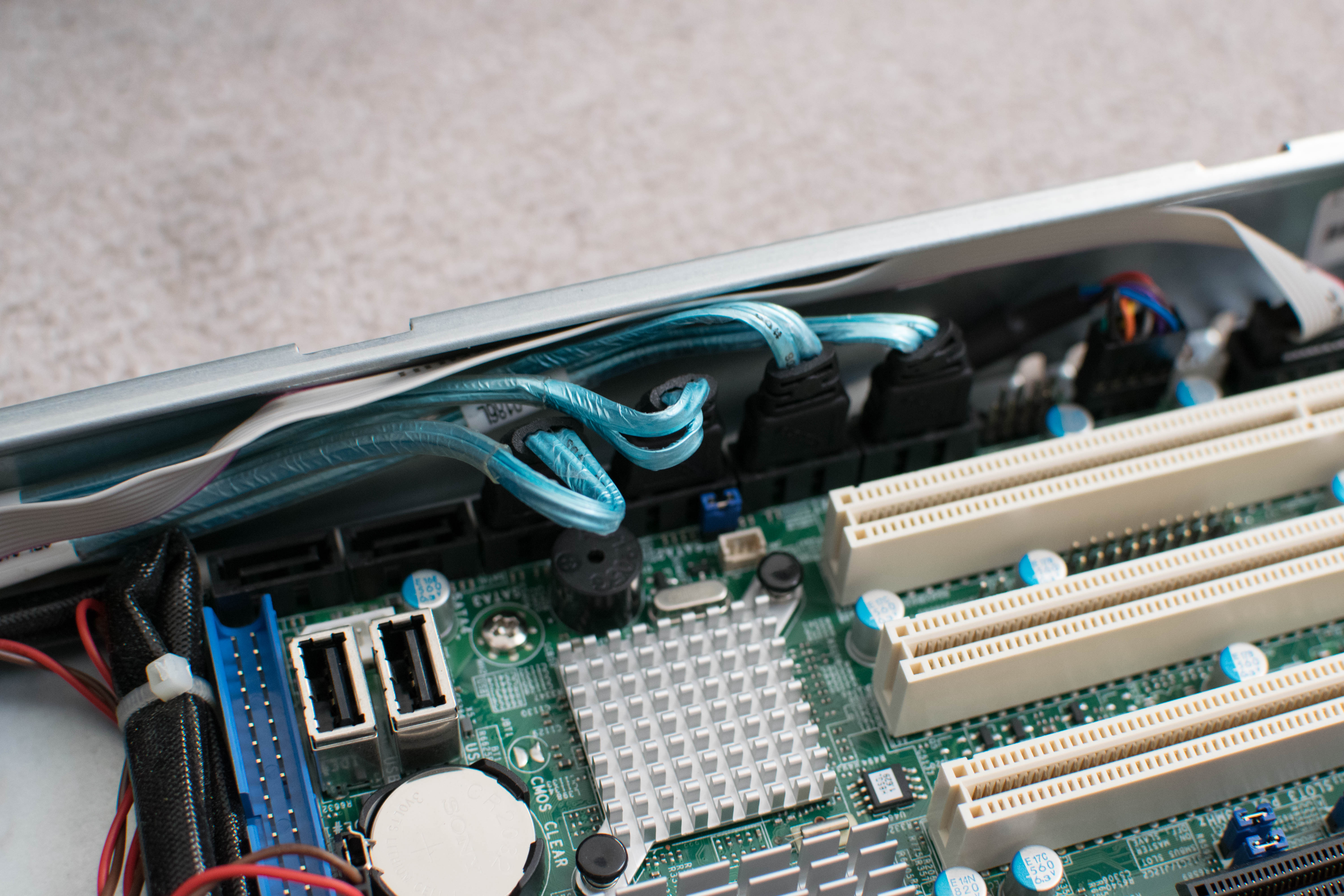 Was genau ist denn tricky an der Verkabelung? Magst du davon mal ein Bild / einige Bilder machen, je nach Bedarf? Ich würde jetzt erwarten, dass da entweder SATA Kabel 1:1 von einem Port am Board auf einen Port an der Backplane gehen oder von vier Ports auf dem Board ein reverse Breakout Kabel an einen SFF-8087 Port auf der Backplane geht.