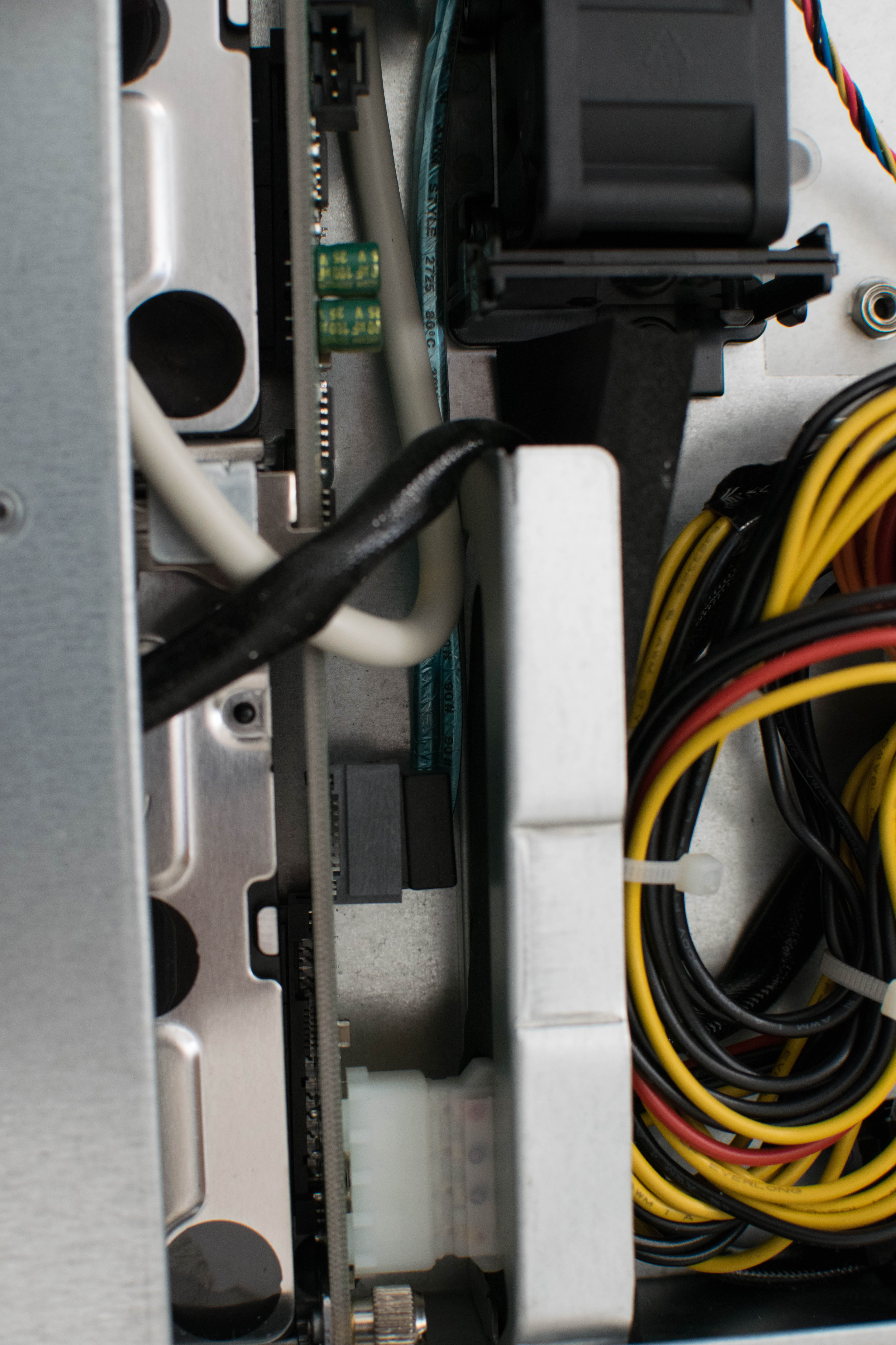 mit "tricky" meine ich die extrem enge Kabelführung direkt an der Backplate. Ich muss die 4 SATA-Kabel da raus wurschteln, damit ich wechselweise die Kabel zu den Ports auf der Plate tauschen kann, um so vielleicht raus zu kriegen, ob es die Kabel selbst sind oder die Backplate. Problem: Die Backplate selbst ist nirgends zugänglich dokumentiert, daher kann ich die vielen Jumper dort nicht auf korrekte Konfiguration testen.