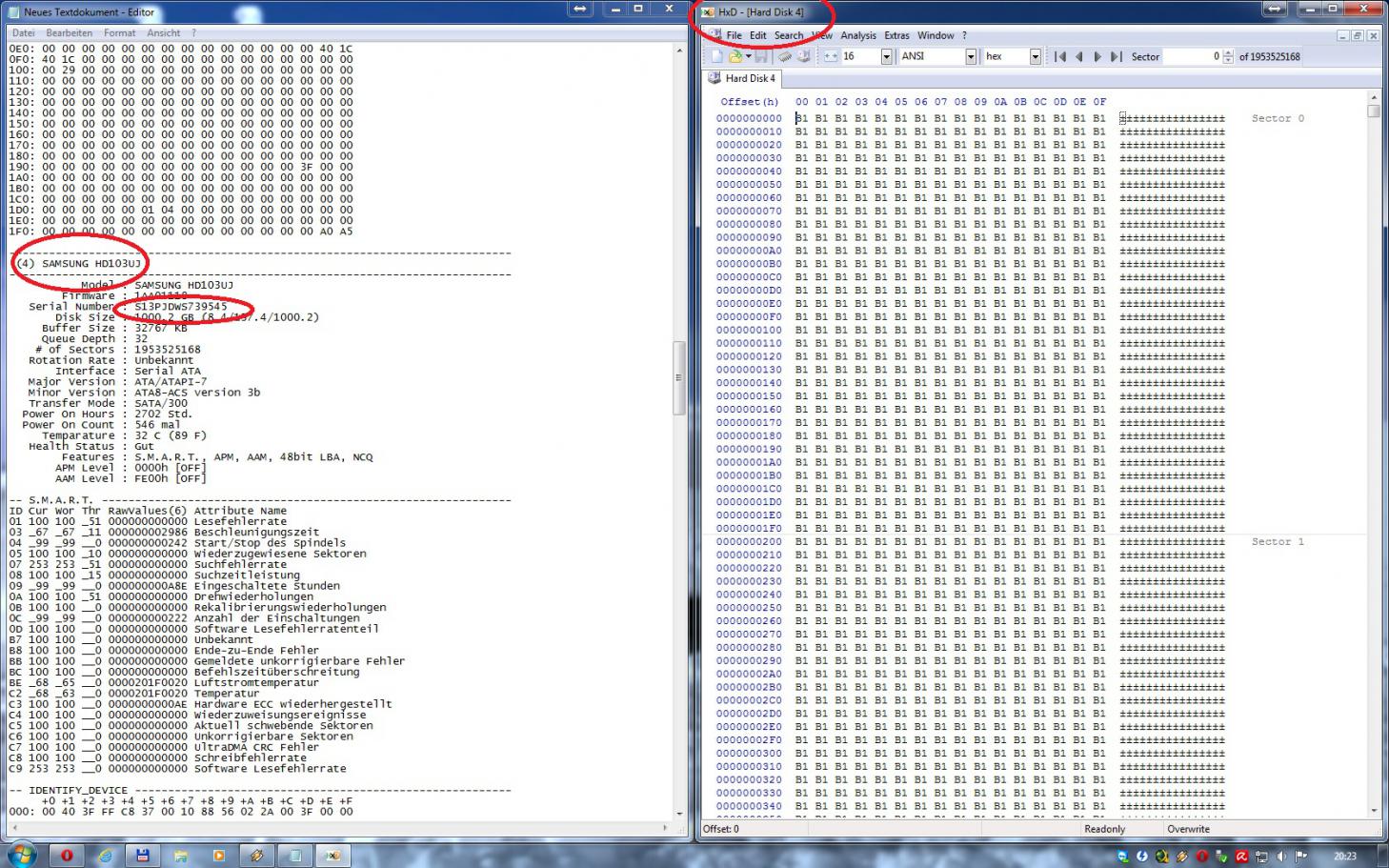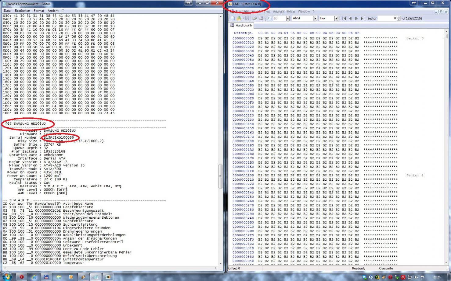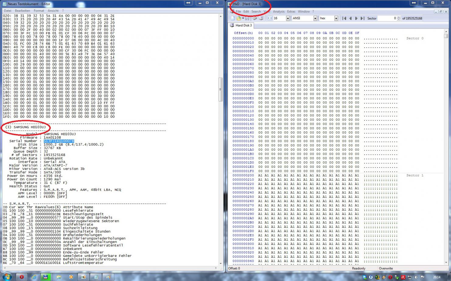Also wie gesagt, als ich es das erste mal umschreiben sollte waren die Werte vertauscht. da hieß es Das bei der einen HDD A1 stehen sollte und nach der fehlerbeseitigung A2. Kann es damit zu tun haben?