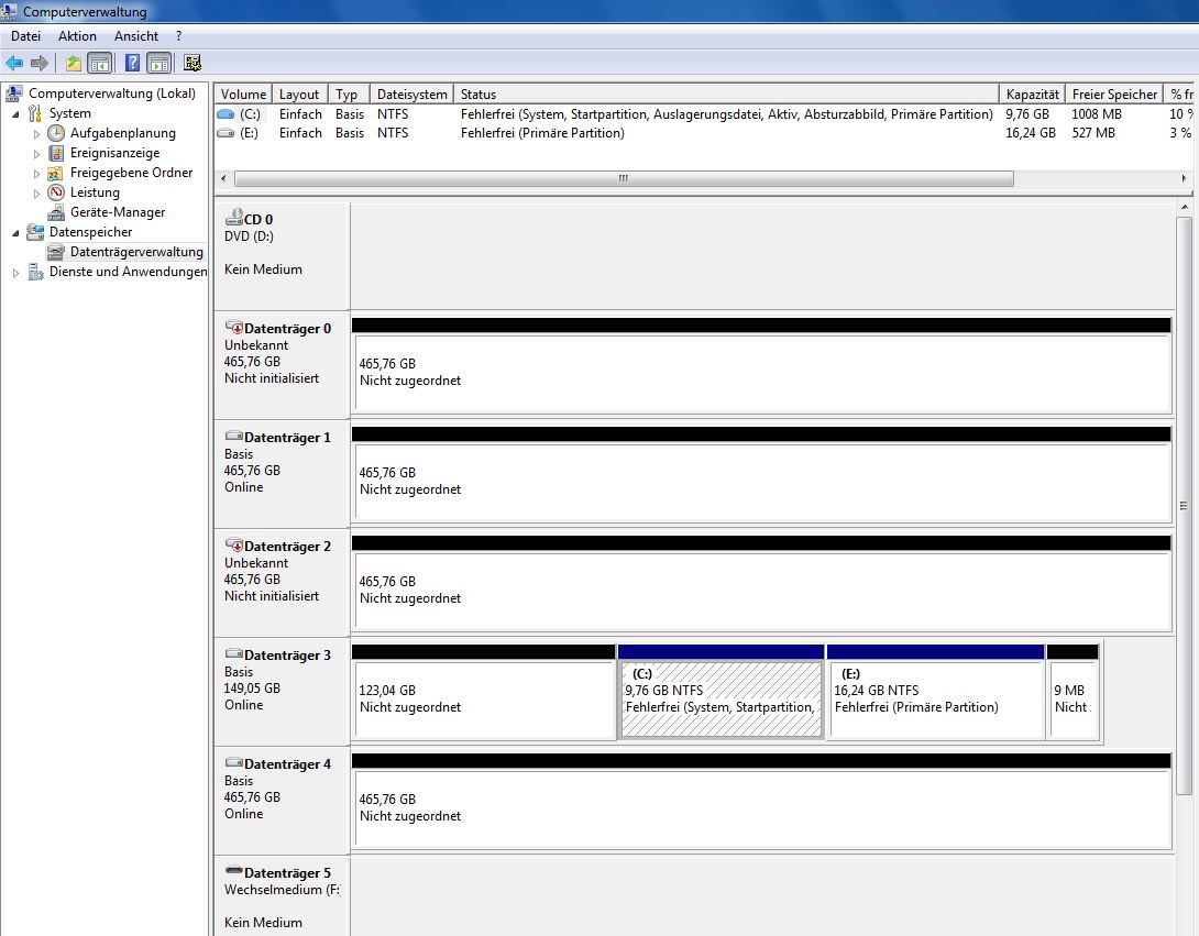 - Im Disk Management(Datenträgerverwaltung) keine Aktionen zu eventuell angezeigten Partitions oder Versuche, diese im Explorer anzuzeigen, machen!