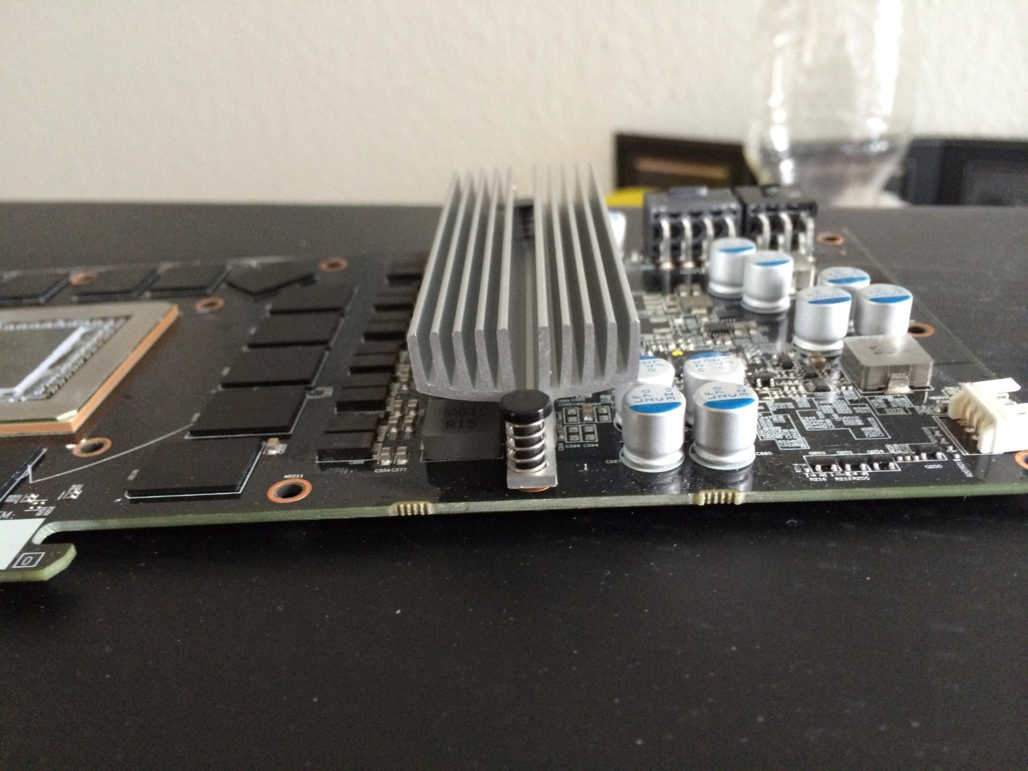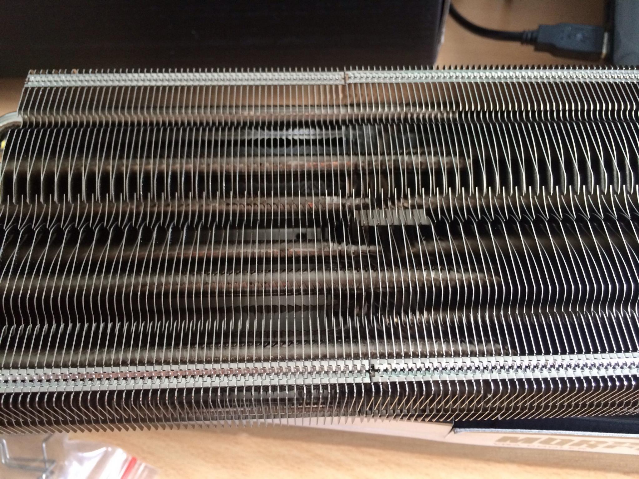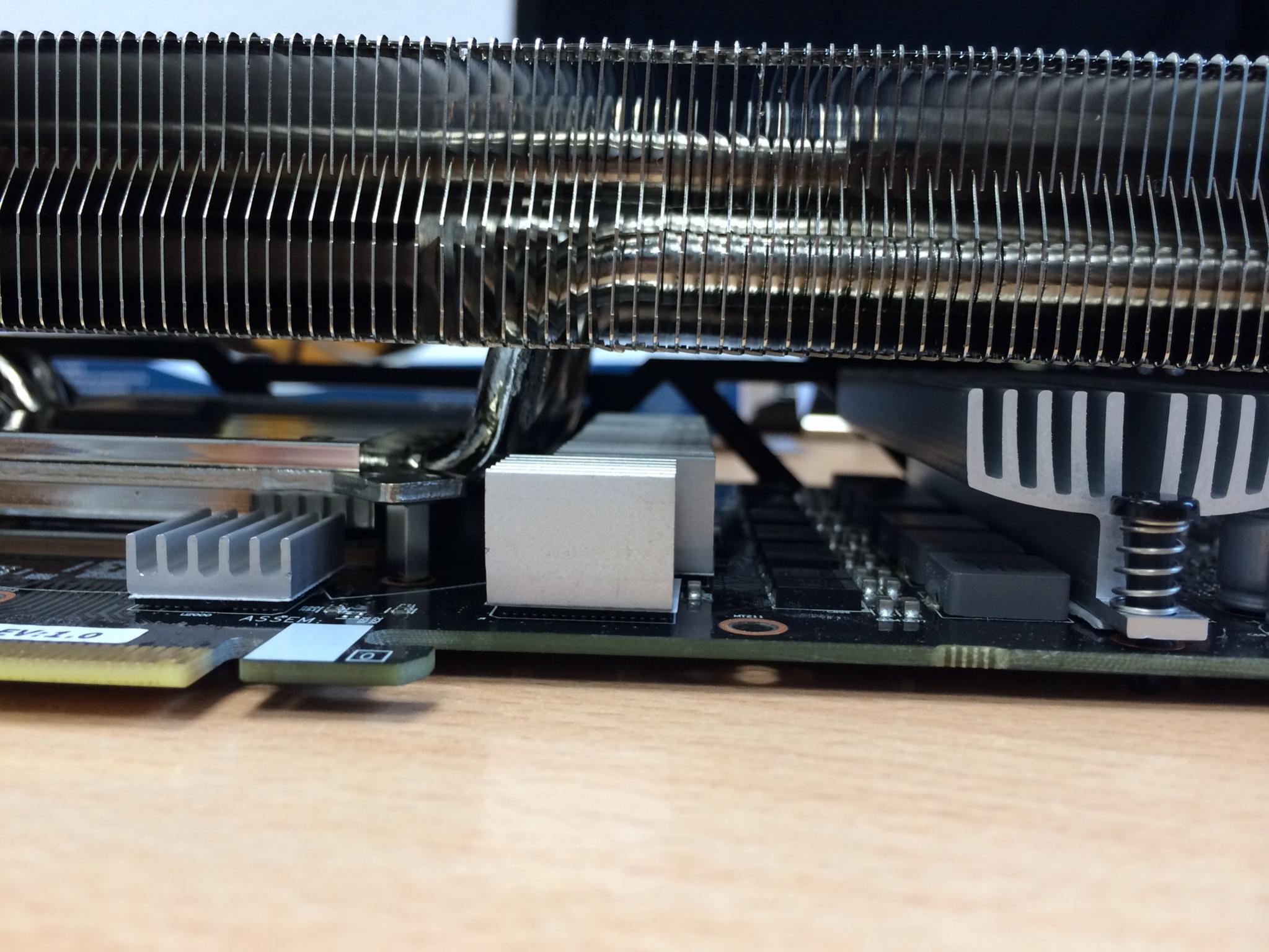 Wenn die Paste aufgetragen ist, wird das ganze mittels Push-Pins auf die VRMs gesetzt. Fertig.